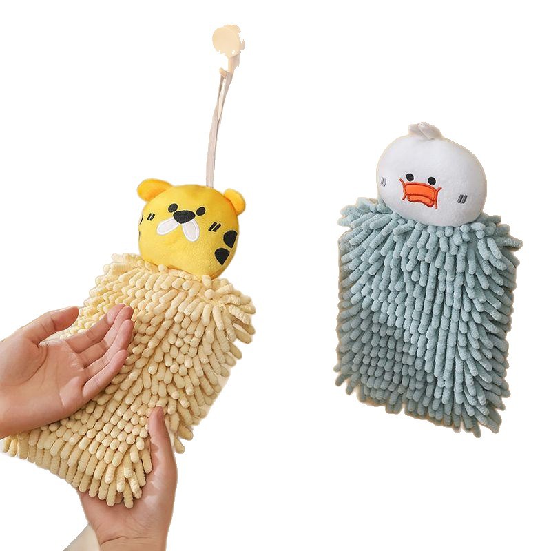 可爱小黄鸭擦手巾挂式雪尼尔厨房加厚吸水速干毛巾卫生间儿童手帕