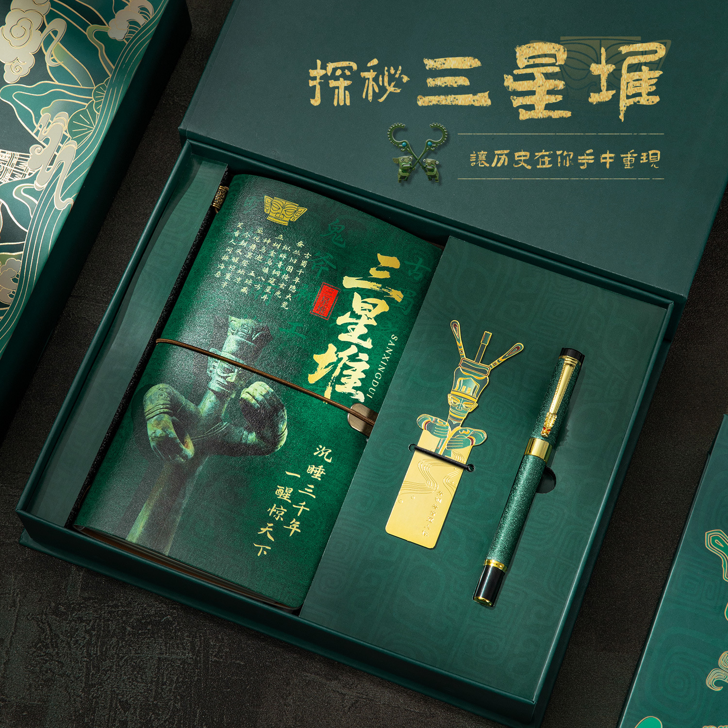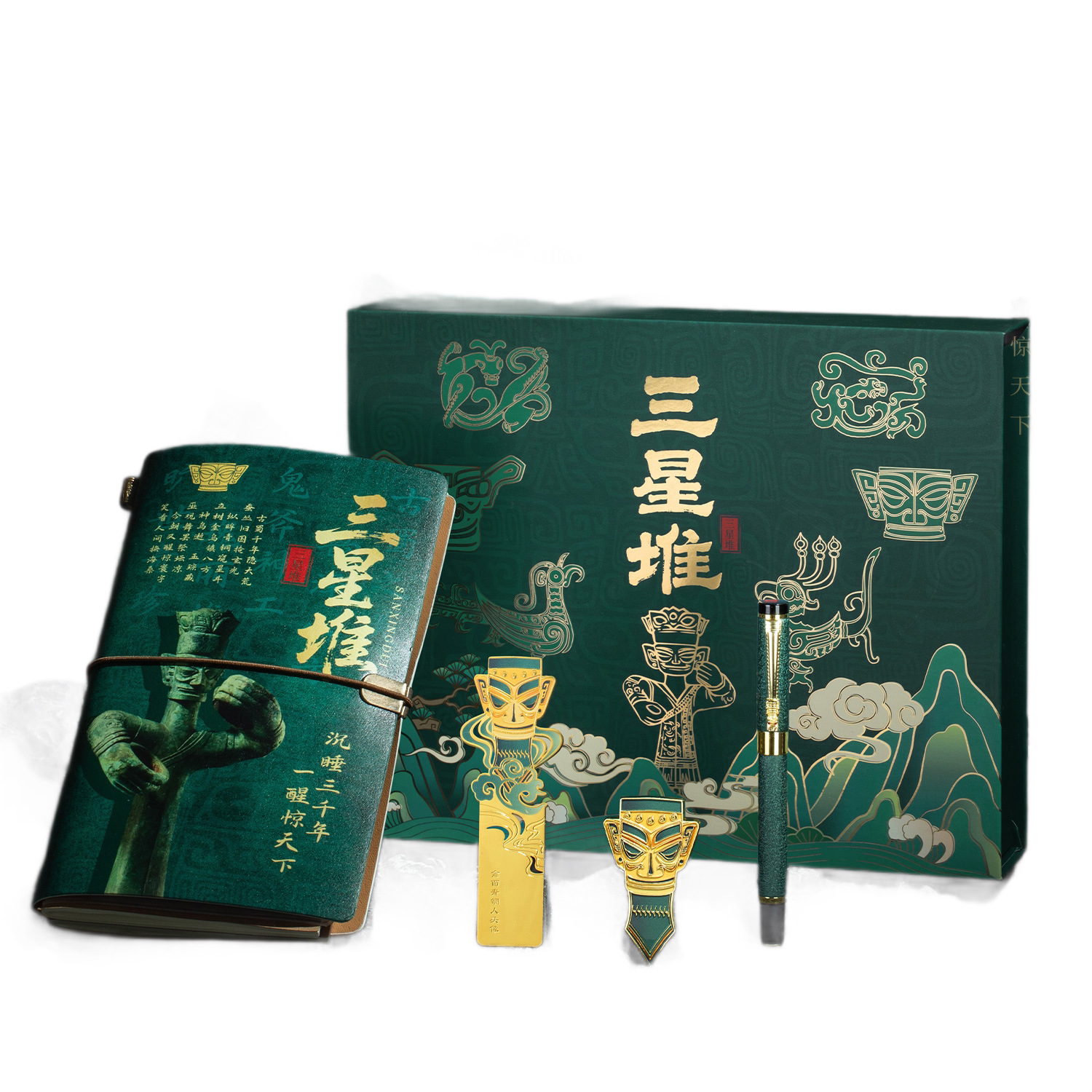 三星堆探秘文创套装 青铜面具笔记本钢笔礼盒 文明纪念品礼盒批发