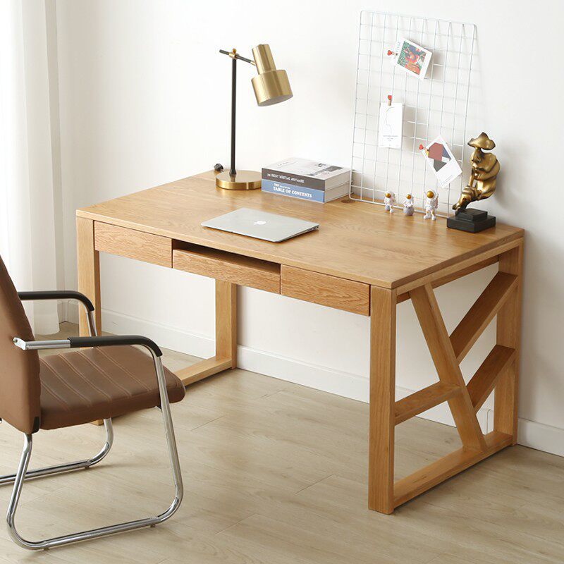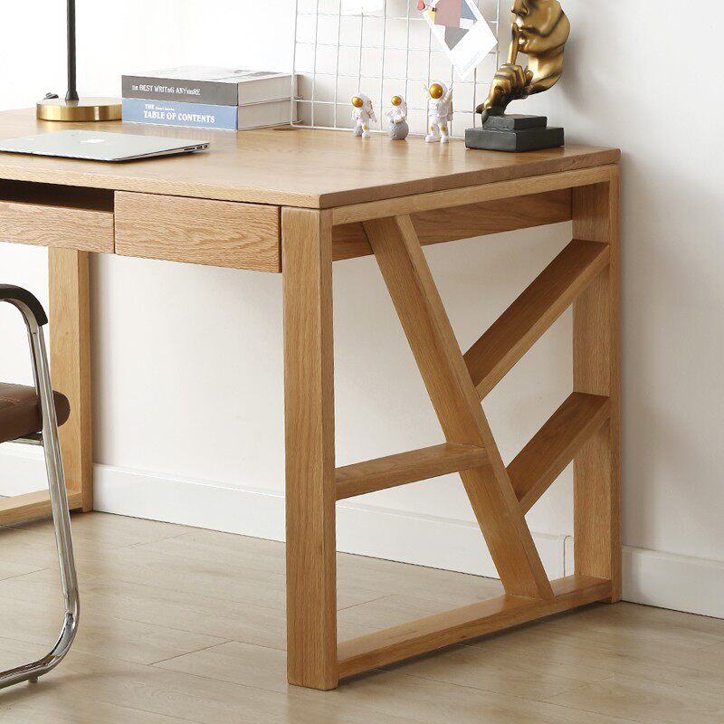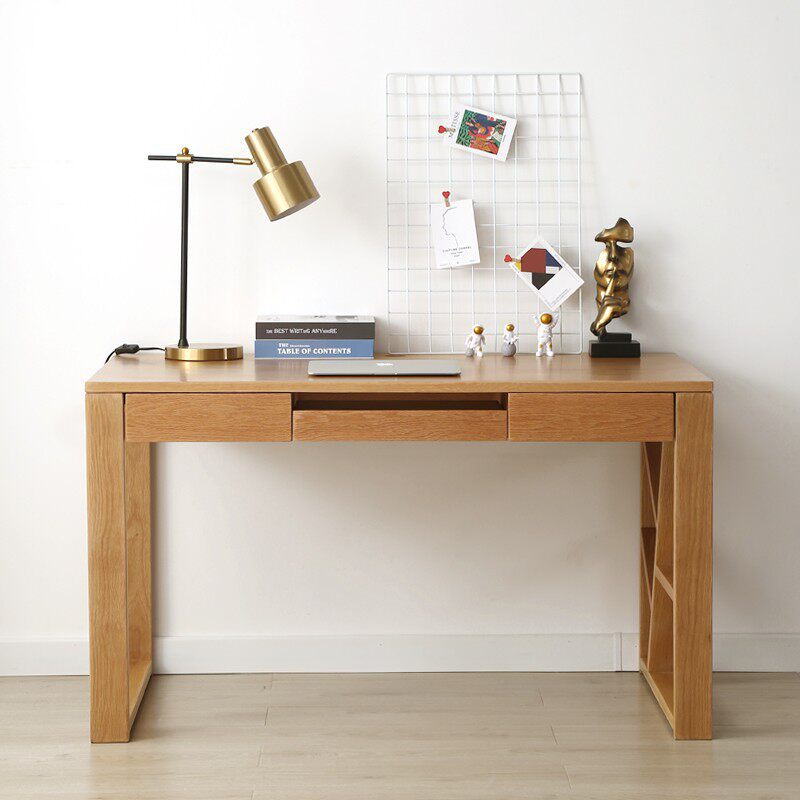 北欧白橡木书桌现代樱桃木电脑桌简约原木学习桌全实木桌子