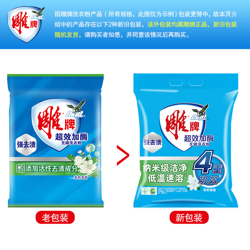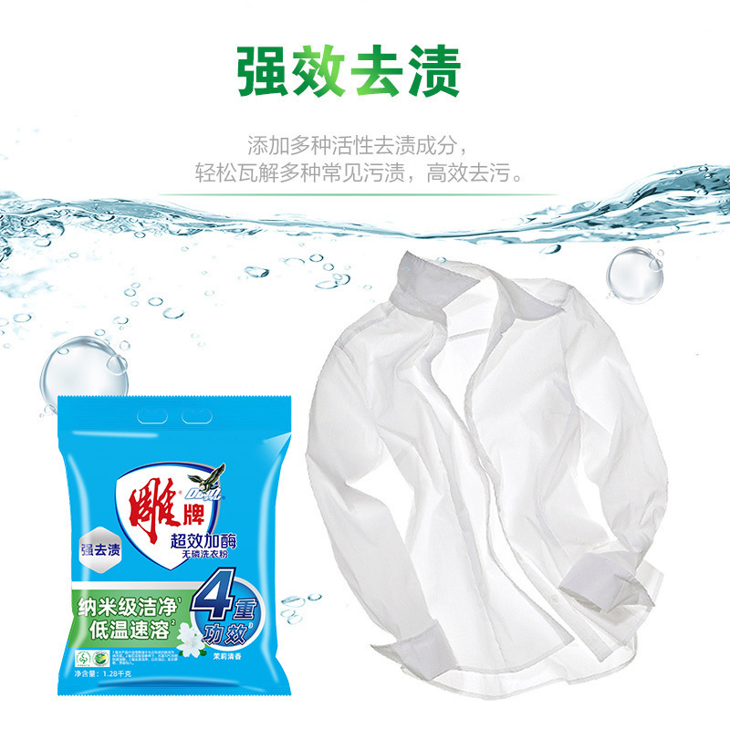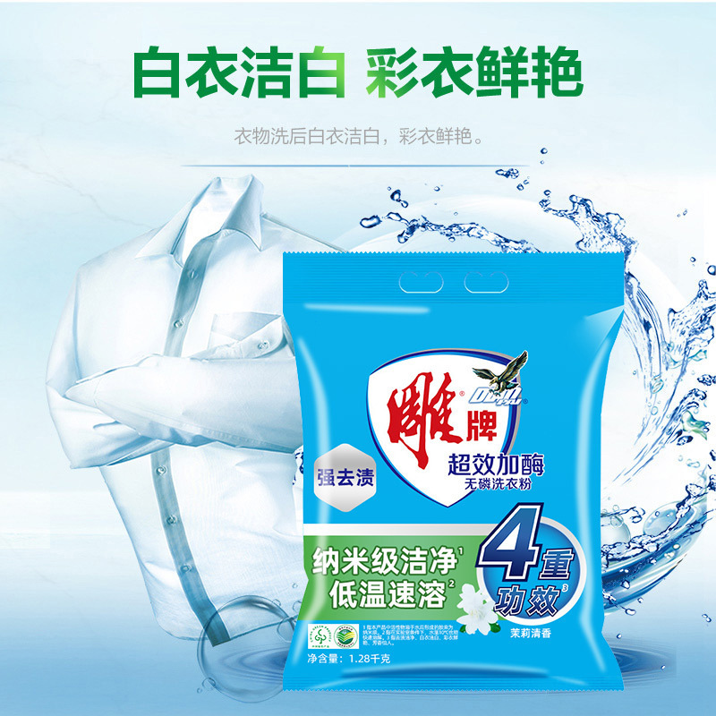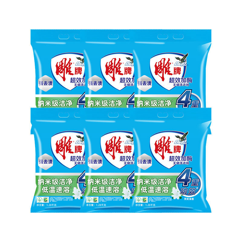 雕牌洗衣粉1.28kg*6袋装超效加酶茉莉花香衣物去渍小包家用实惠装