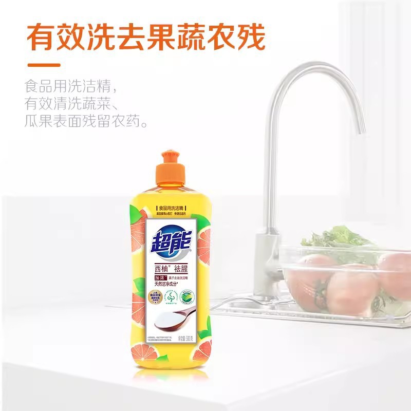 超能西柚洗洁精500g小苏打去腥离子去油污易冲洗宿舍寝室家用量批