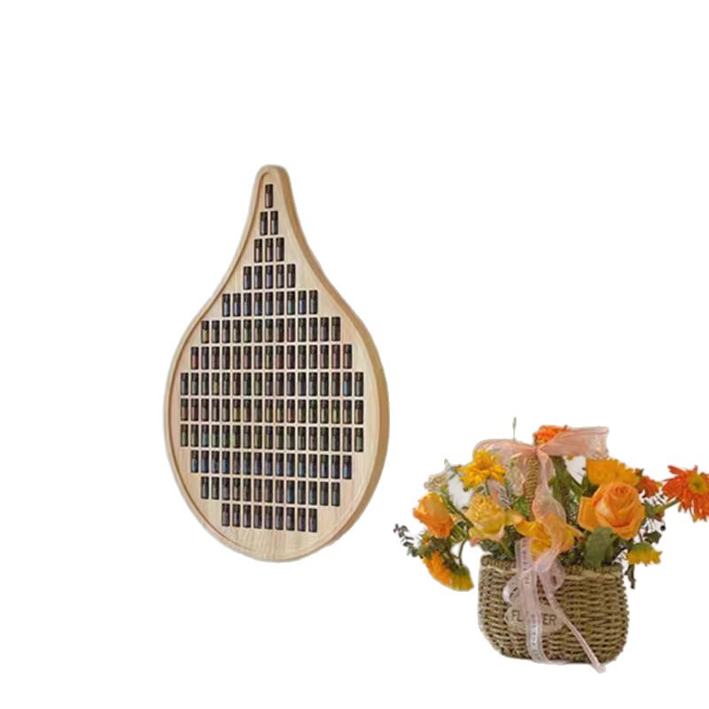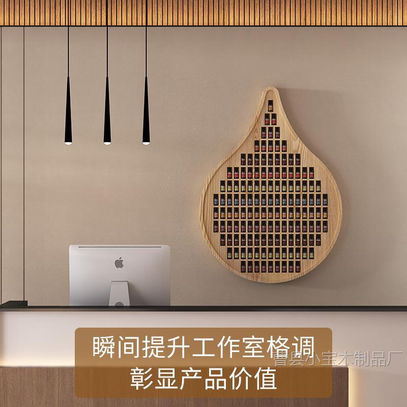 136格精油展示架挂墙水滴口红分装瓶收纳整理一体实木陈列多特瑞