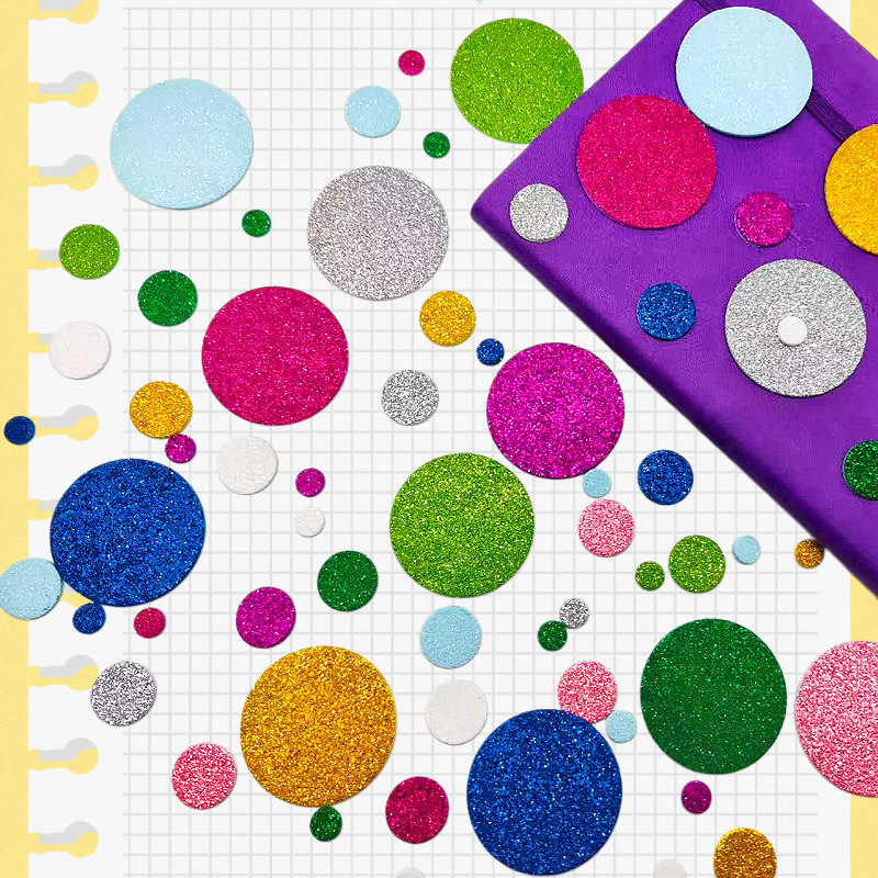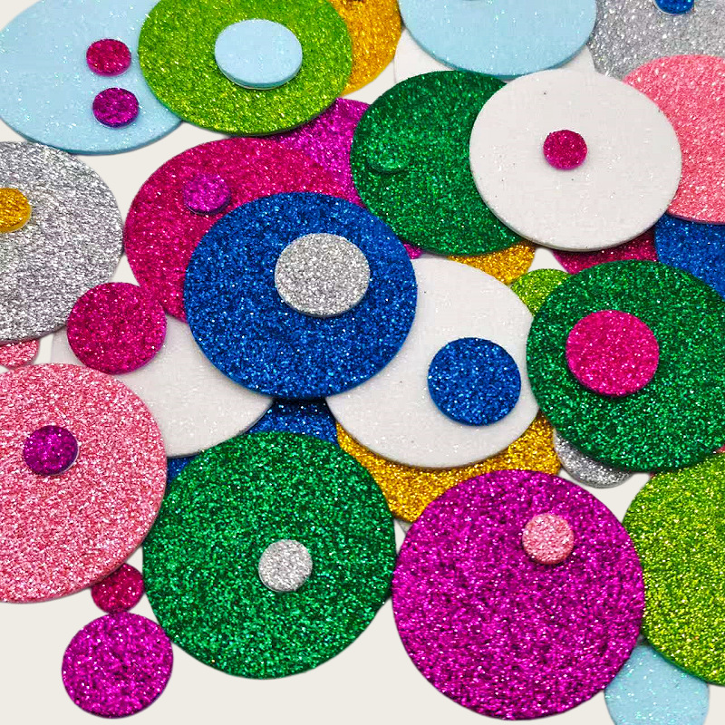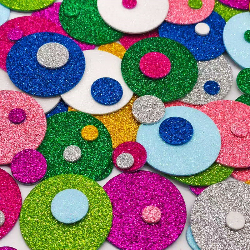 批发彩色闪粉泡沫圆贴 自粘金葱圆点贴纸 跨境手工课派对装饰用品