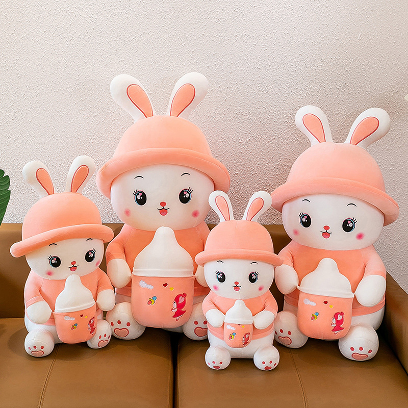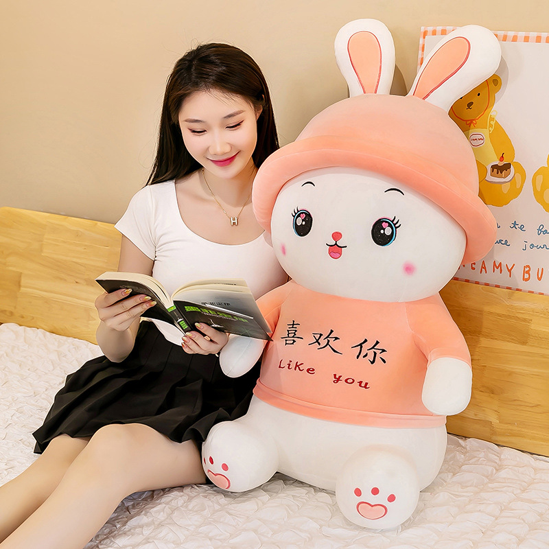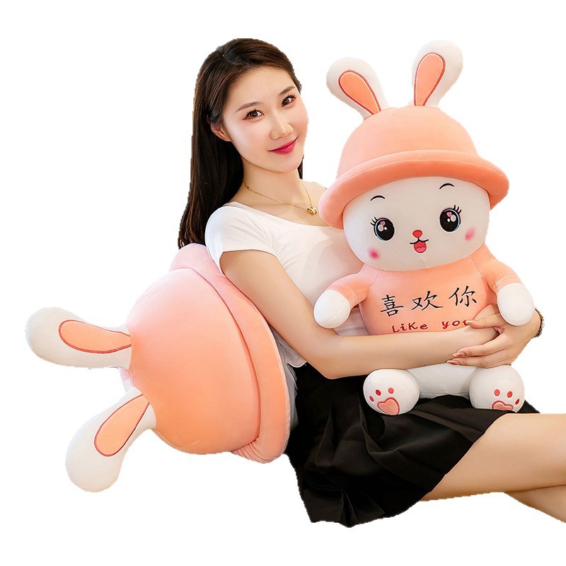 抖音新款帽子兔毛绒玩具可爱小白兔公仔儿童节礼物玩偶婚礼抛洒娃