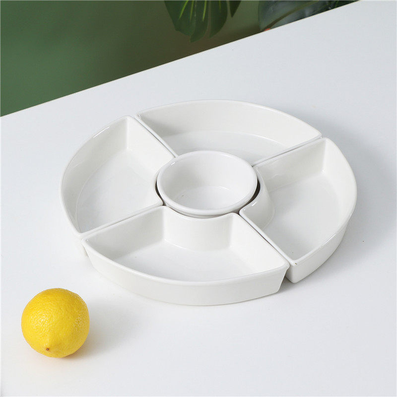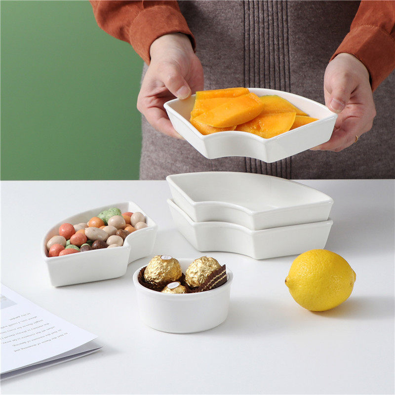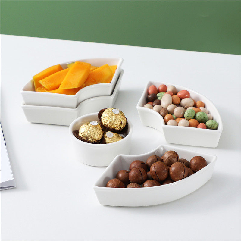 陶瓷零食拼盘五件套日式点心盘扇形分格餐盘干果盘水果盘凉冷菜盘