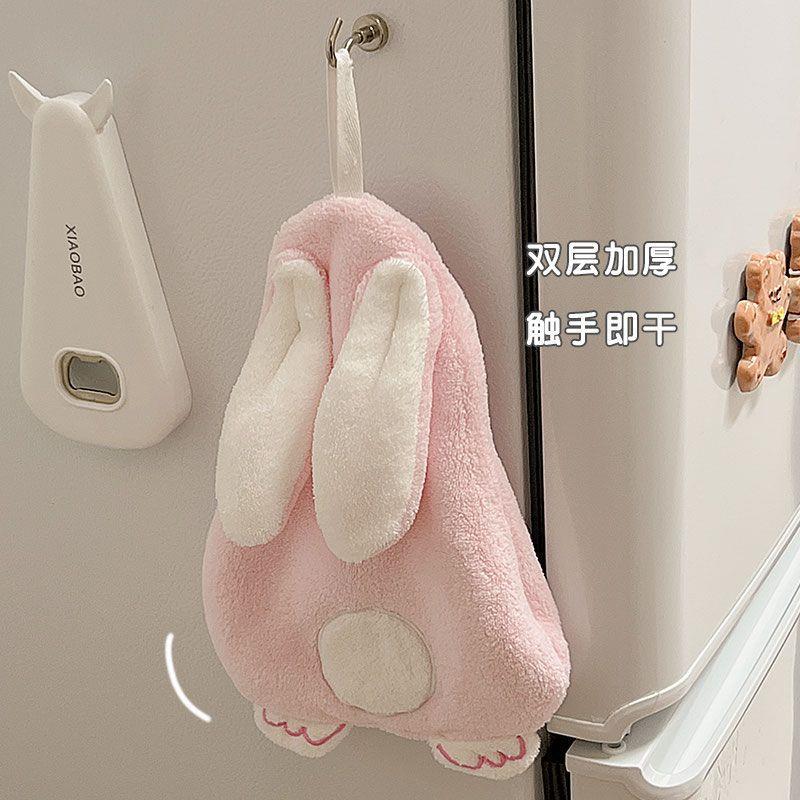 可爱卡通兔子擦手巾挂式厨房超强吸水加厚速干毛巾卫生间珊瑚绒