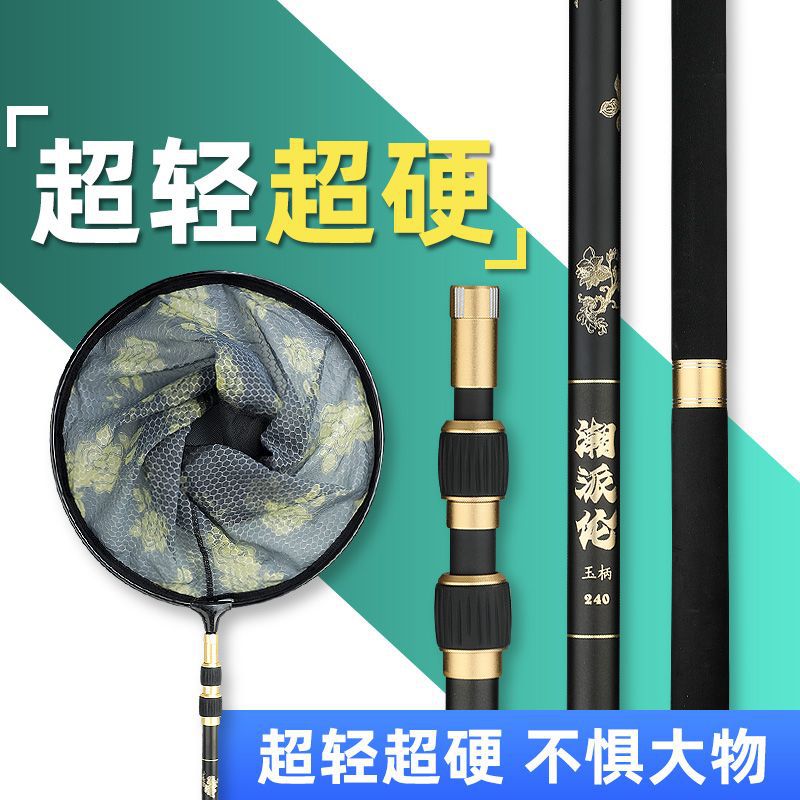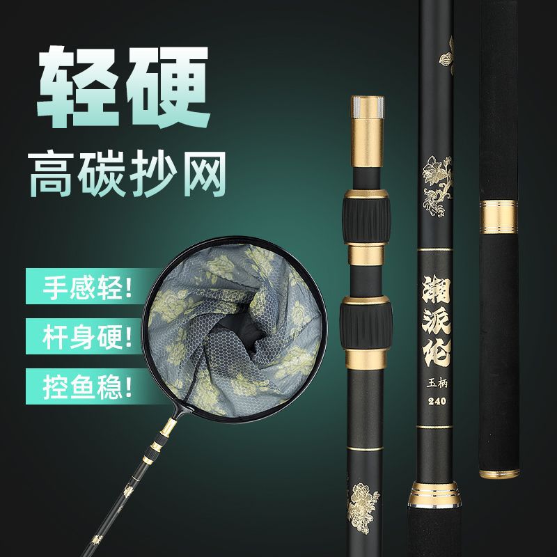 黑金碳素抄网杆超轻超硬碳素抄网竿鲢鳙大物竿巨物抄网2.1米飞抄