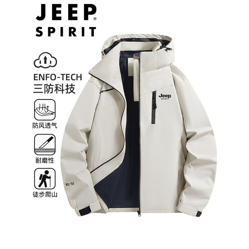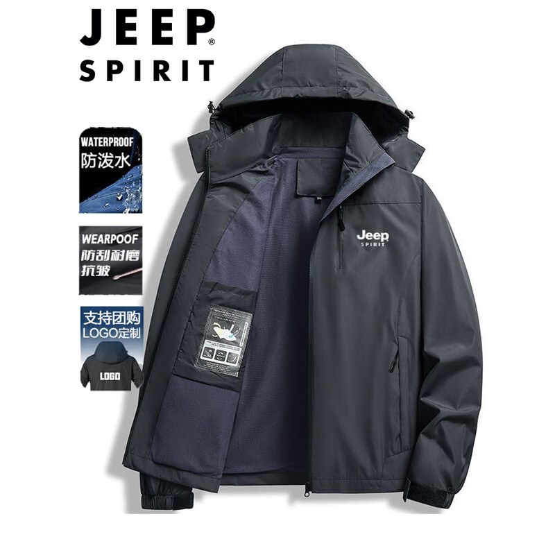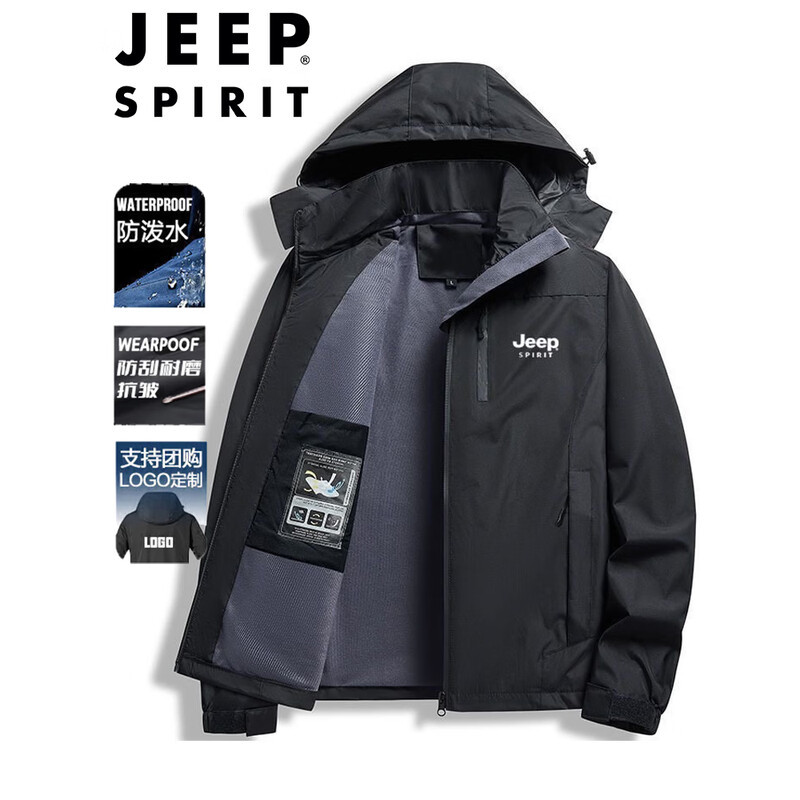 JEEP SPIRIT吉普冲锋衣男士春秋季户外运动外套防风耐磨宽松夹克