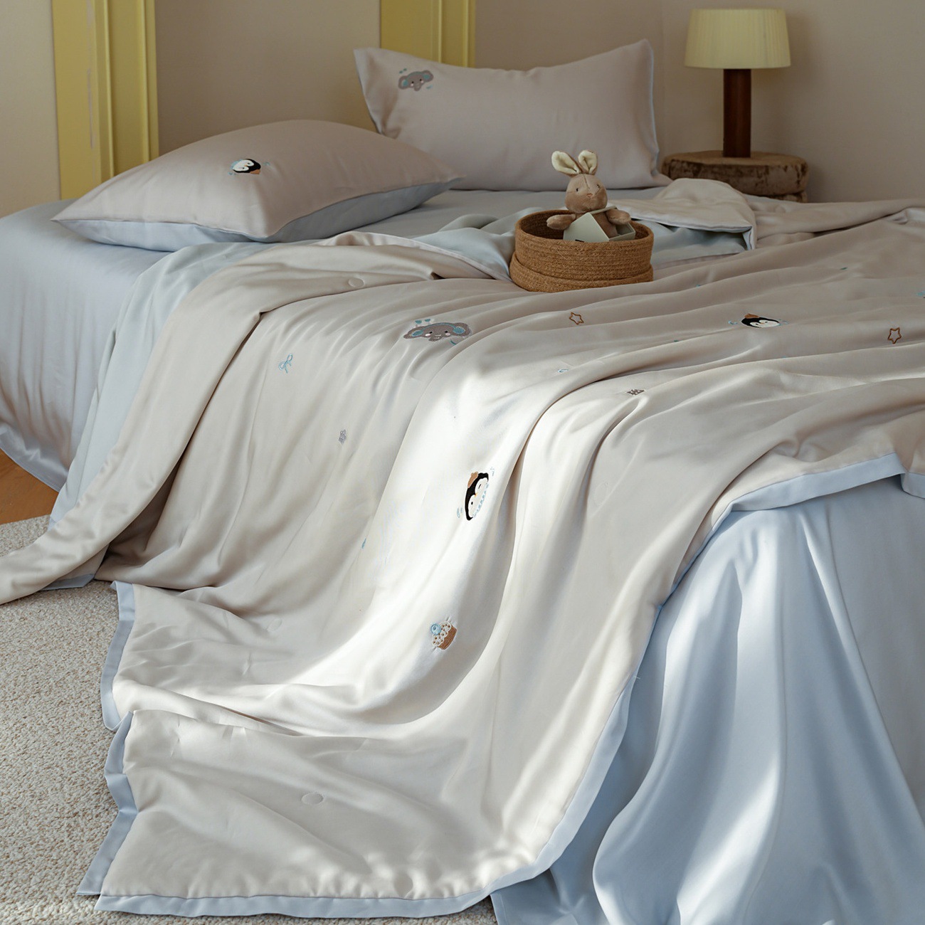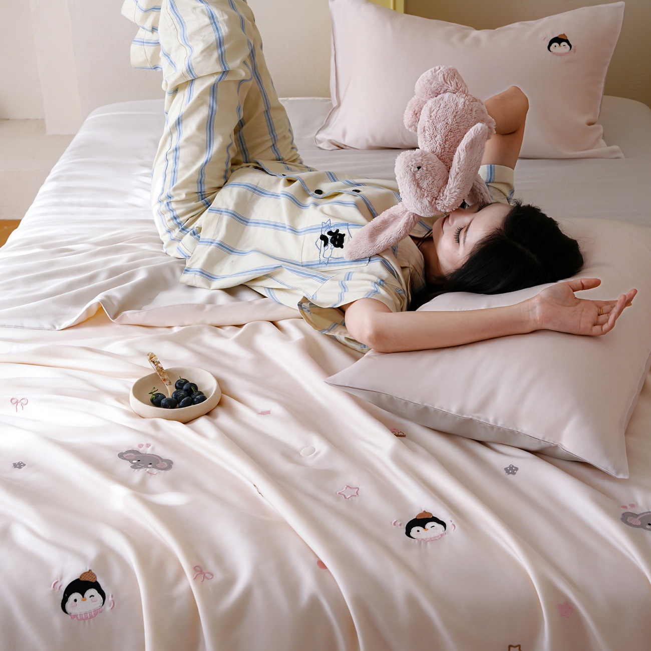 天丝夏凉被卡通刺绣可水洗空调被薄被子夏被四件套冰丝凉感莱赛尔