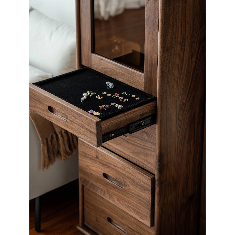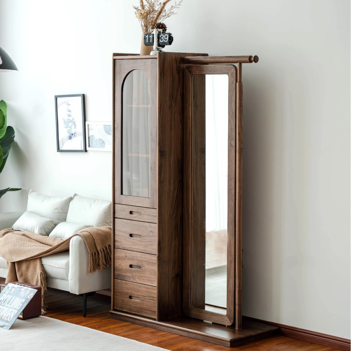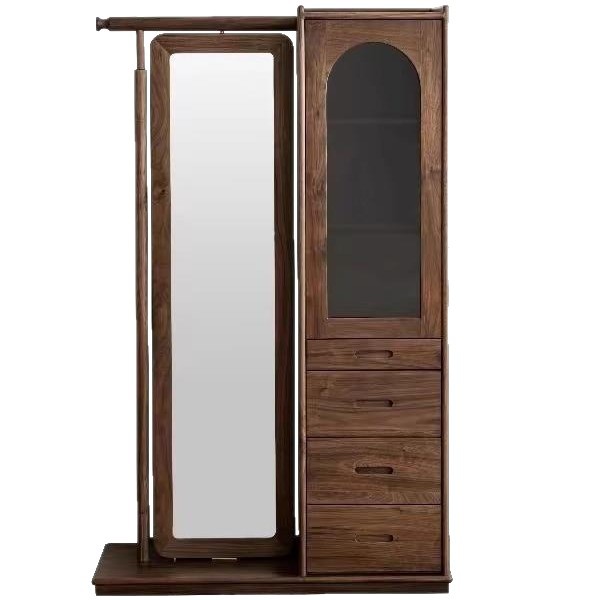 黑胡桃衣帽架穿衣镜一体实木化妆镜柜多功能储物柜落地旋转全身镜