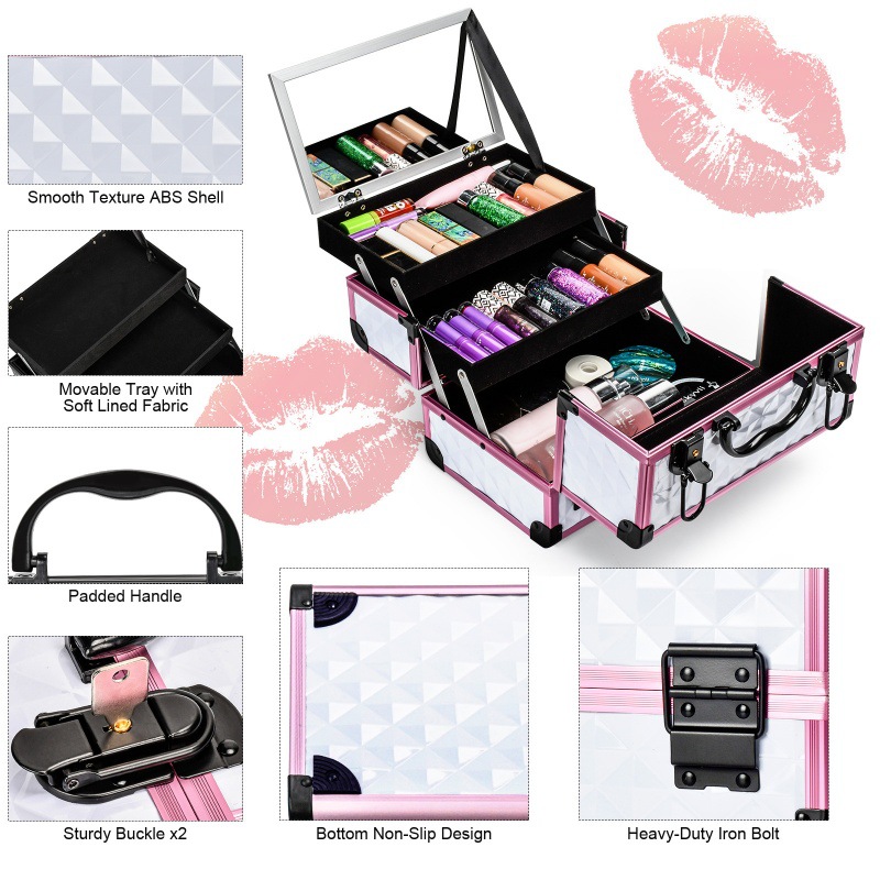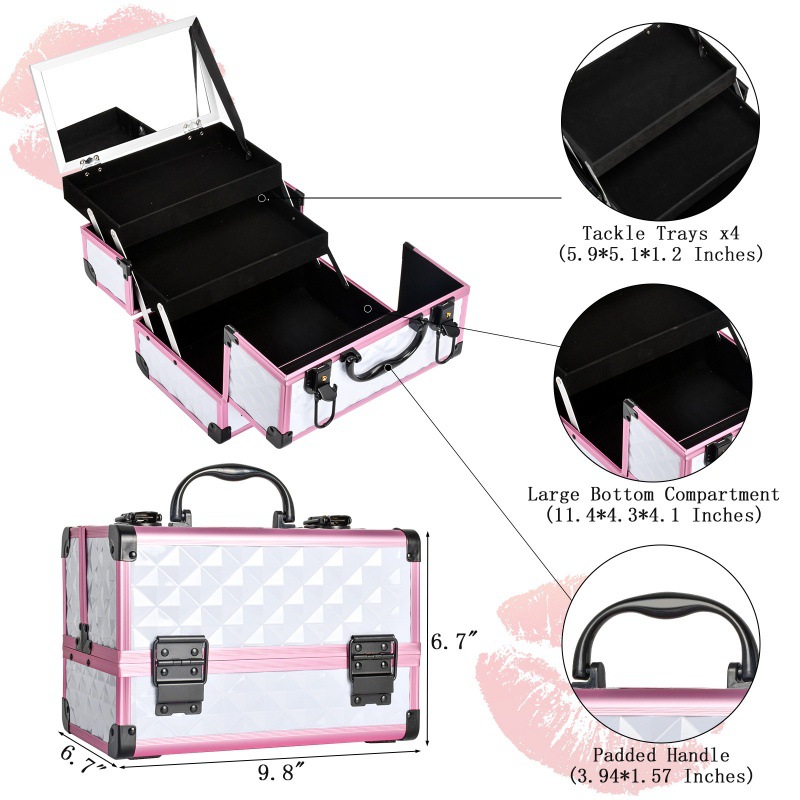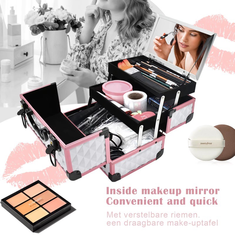 铝合金化妆箱双层大容量女收纳箱手提带锁化妆包化妆品双层铝箱