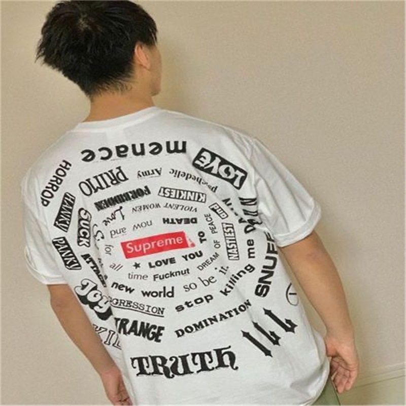 现货 高品质 潮牌印花字母 Sup 旋涡螺旋印花短袖T恤