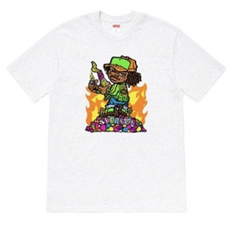 现货高版本Sup SS19 Molotov Kid Tee AshGrey小男孩 漫画短袖T恤