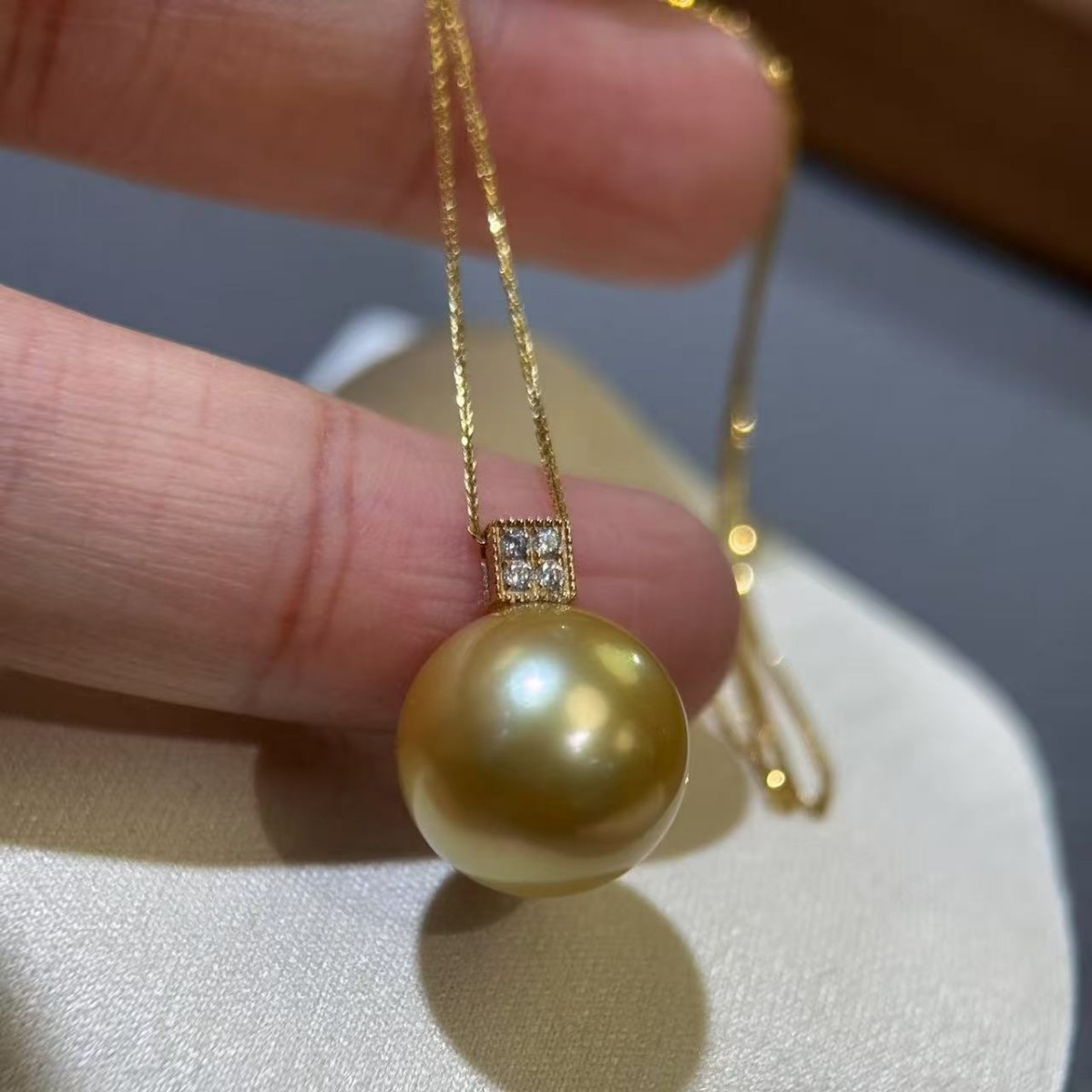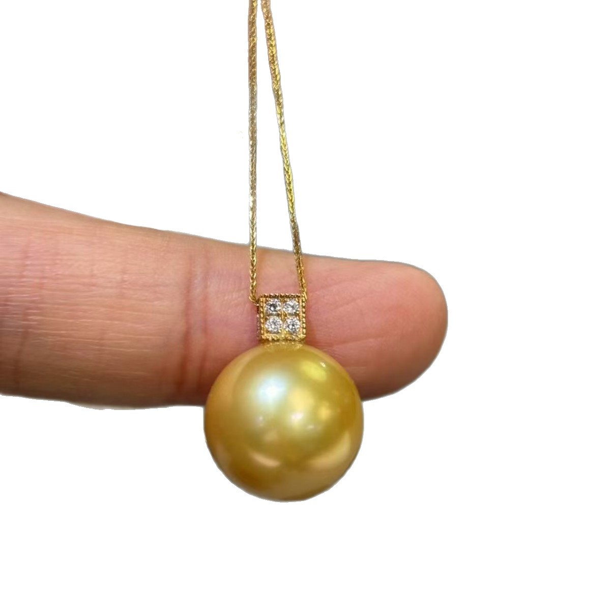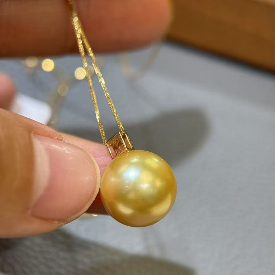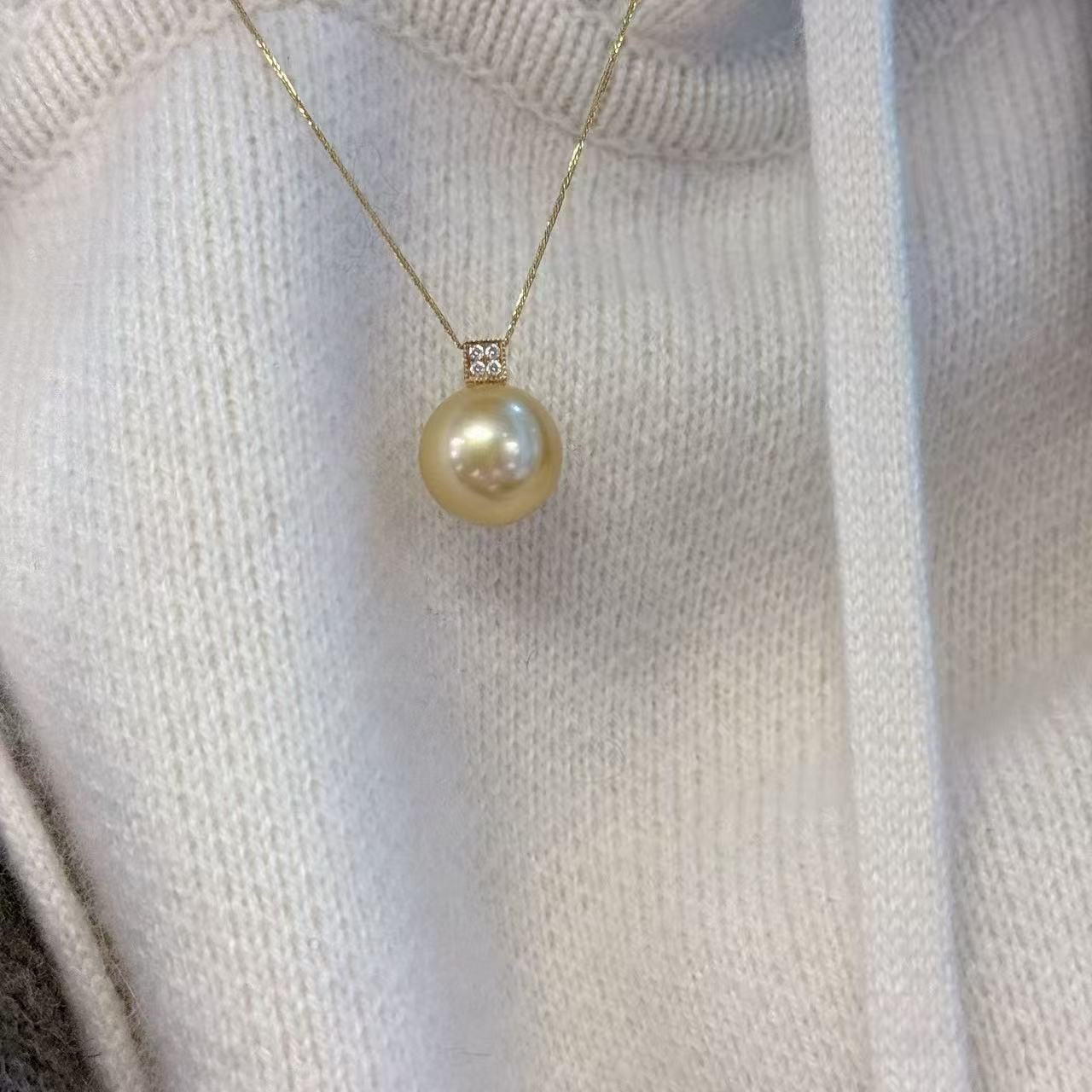 诸暨珍珠12-13mm浓金南洋海水金珠镜面珠光基本无瑕18k金吊坠头