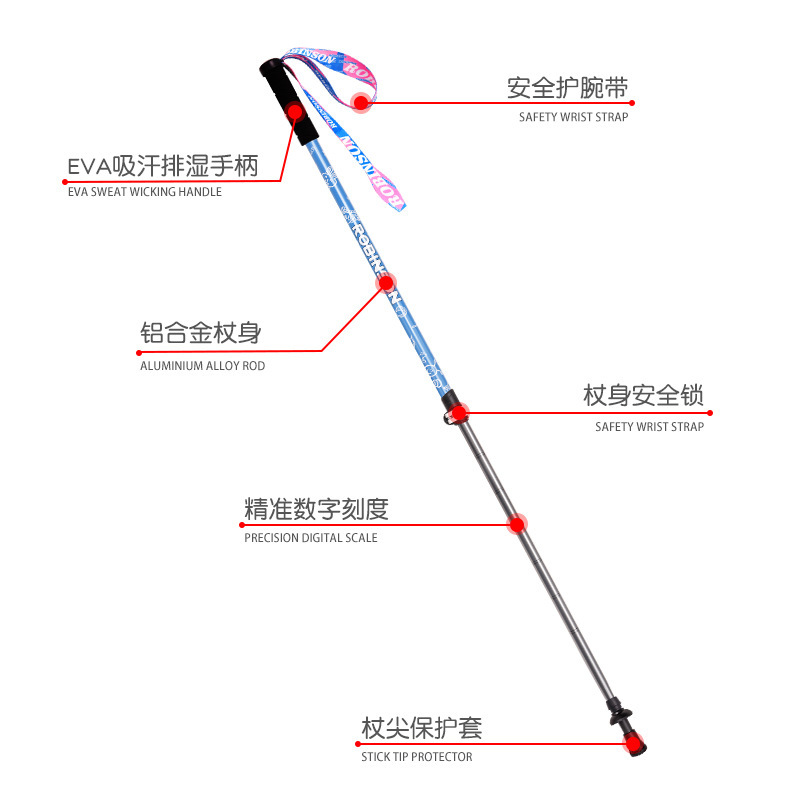 希步儿童登山杖户外铝合金超轻便携伸缩登山杖坚固耐用拐杖徒步装