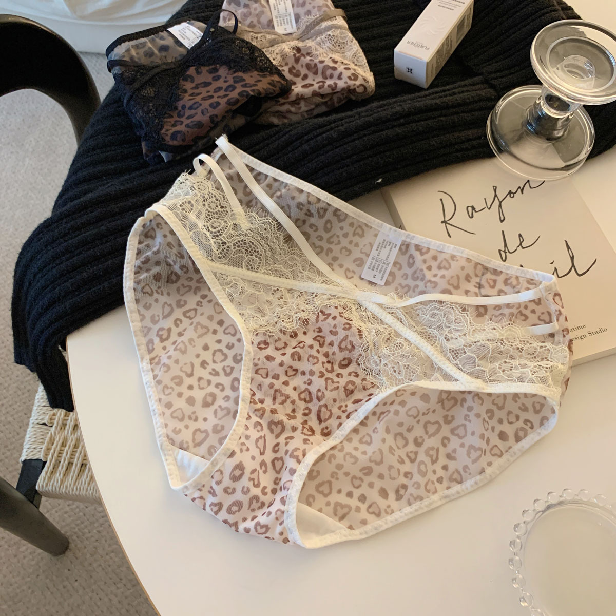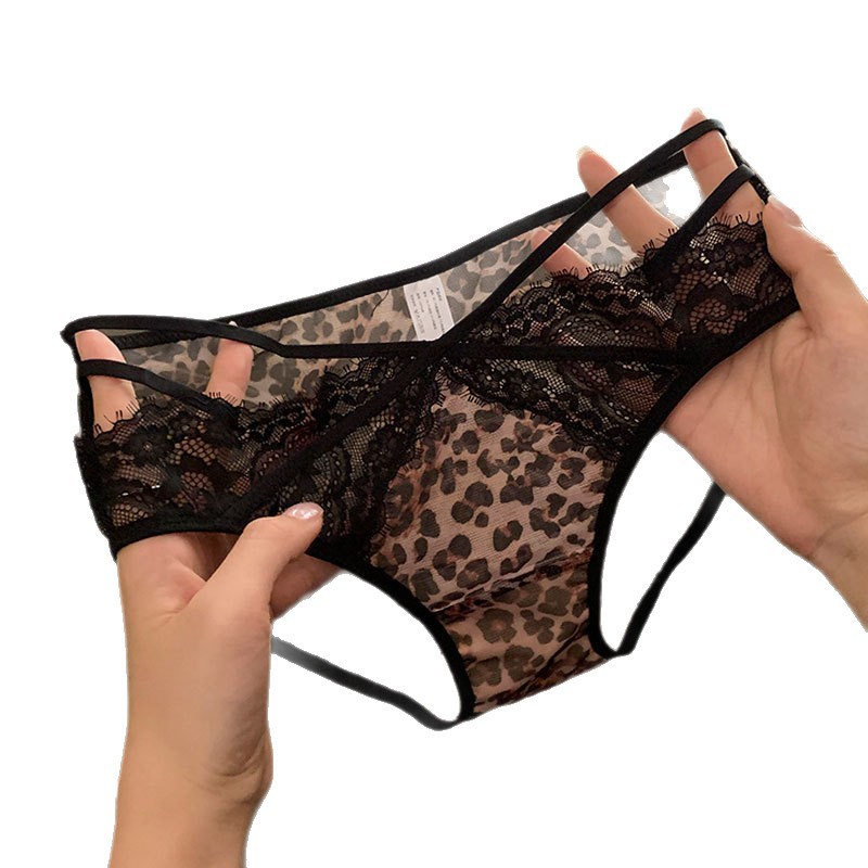 性感豹纹镂空勾人低腰纯欲高级蕾丝内裤女裆网纱包臀2026新款