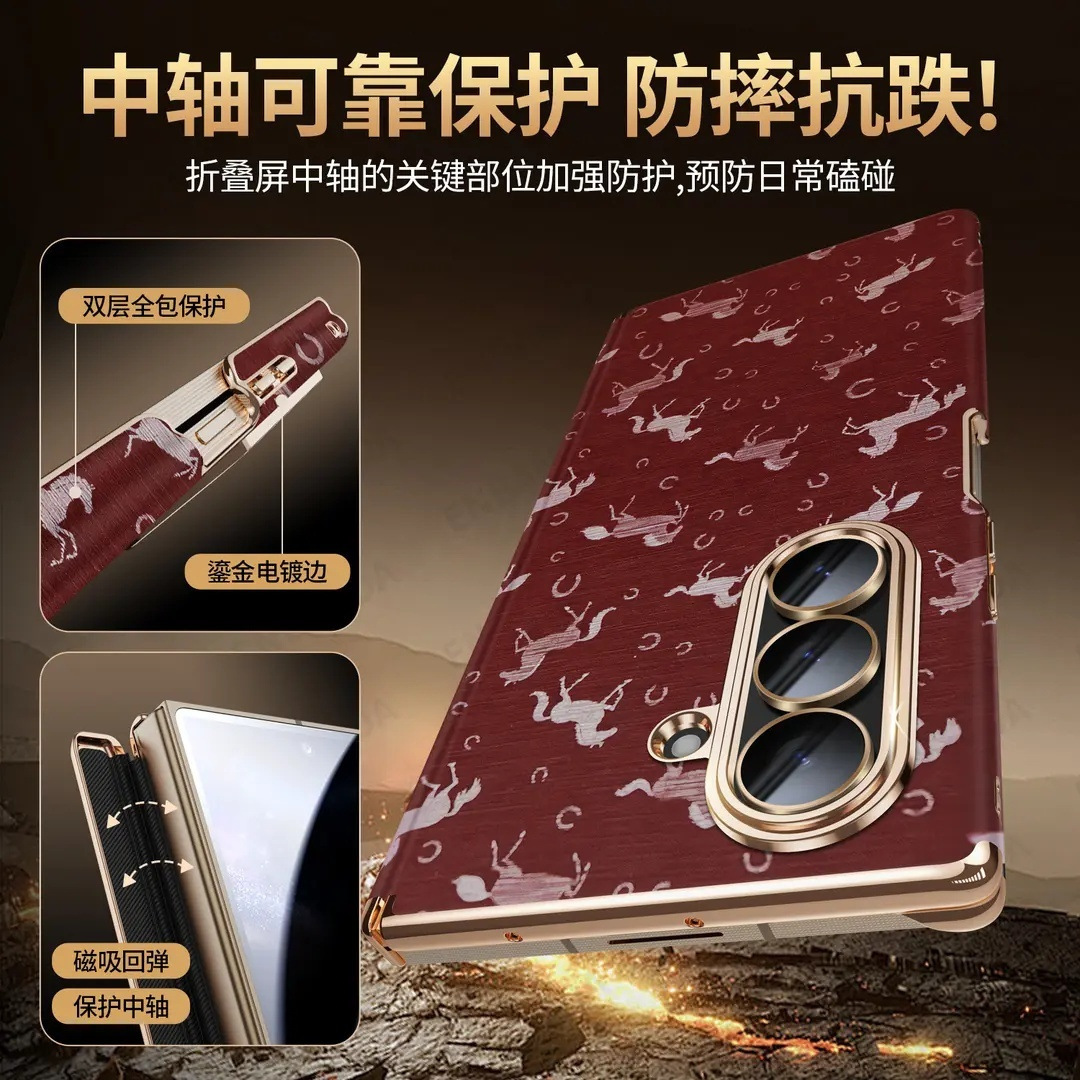 适用三星w26心系天下手机壳zfold7万马奔腾双中轴电镀FOLD6/5壳