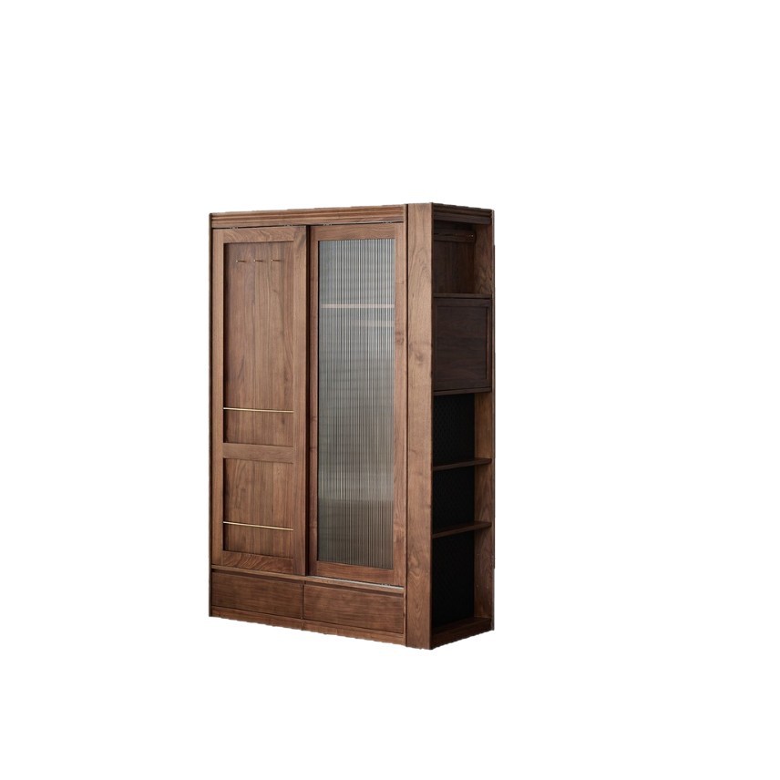 北美黑胡桃木组合衣柜实木简约移门衣柜樱桃木小户型卧室收纳柜