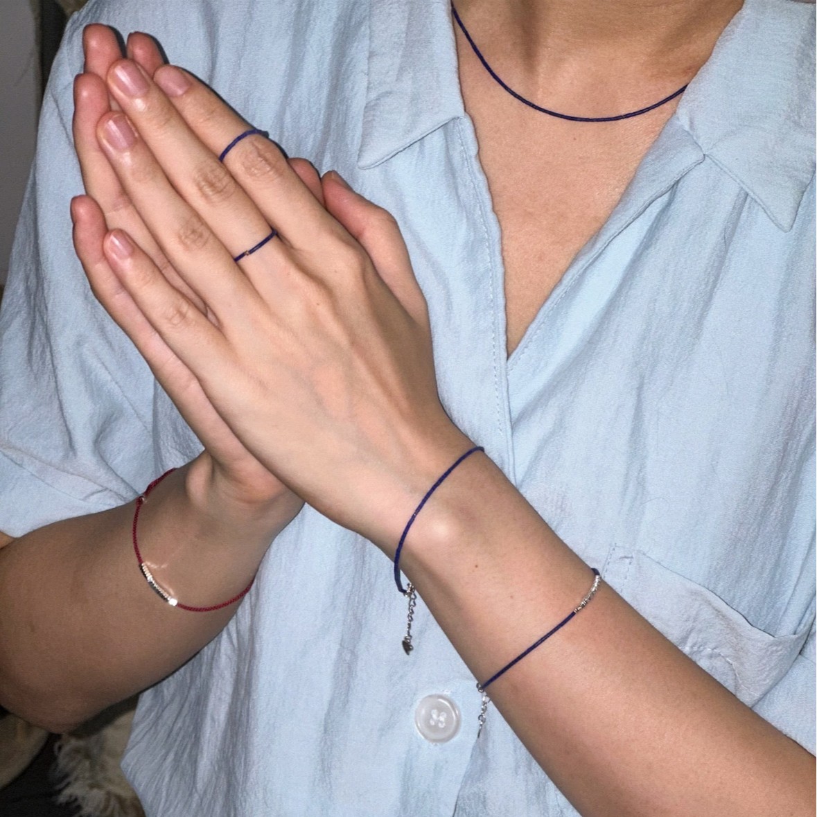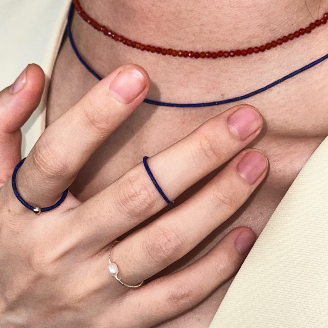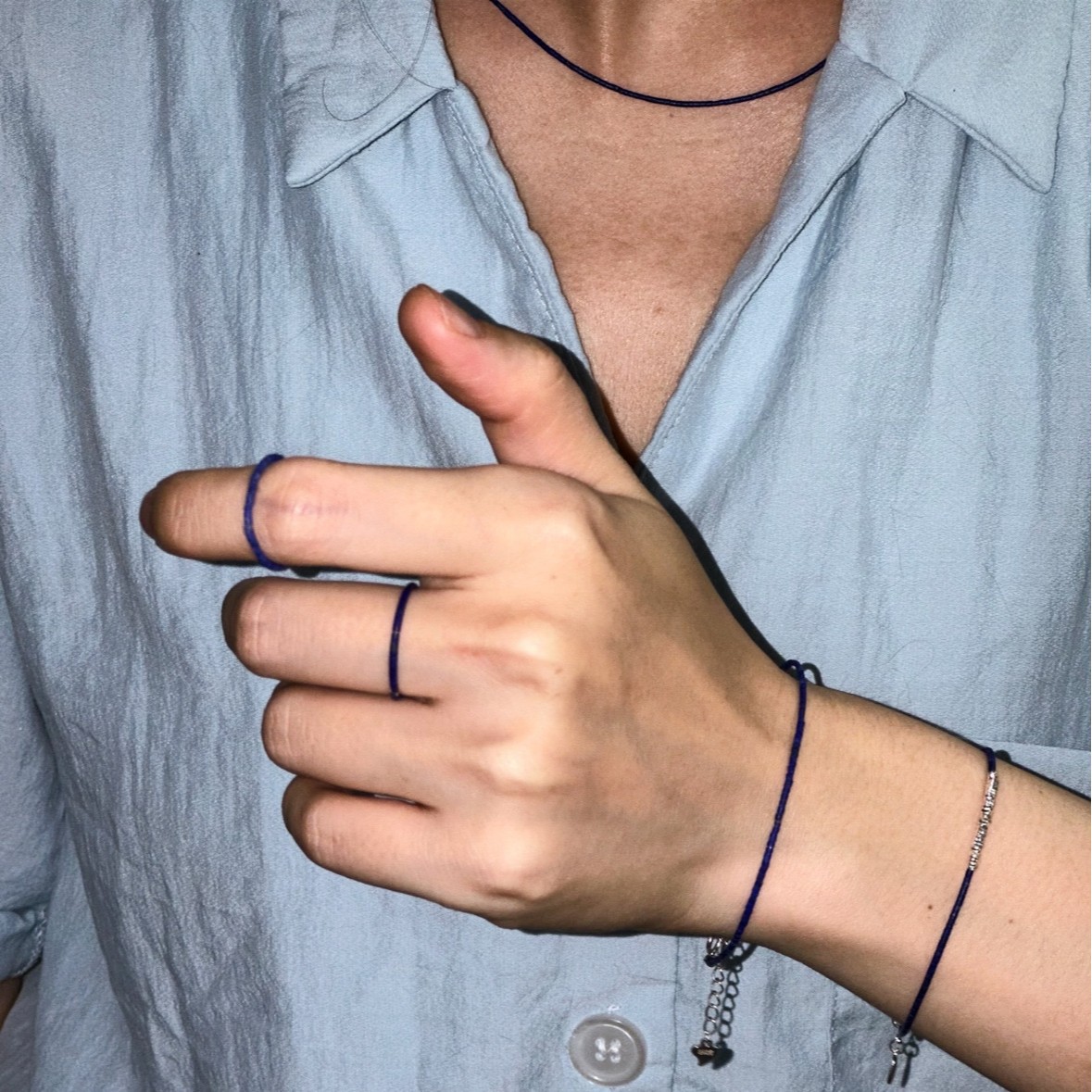 新中式极细1mm简约天然青金石项链小众设计纹身感S925纯银锁骨链