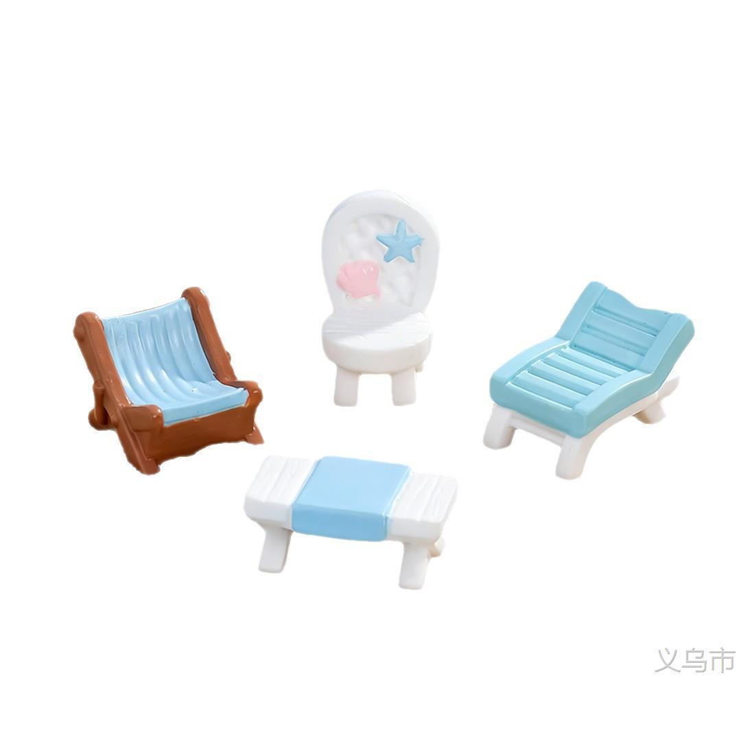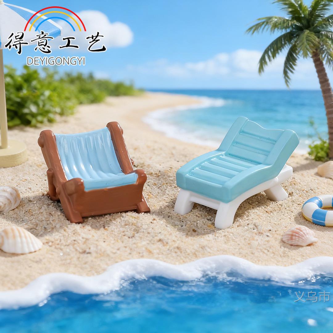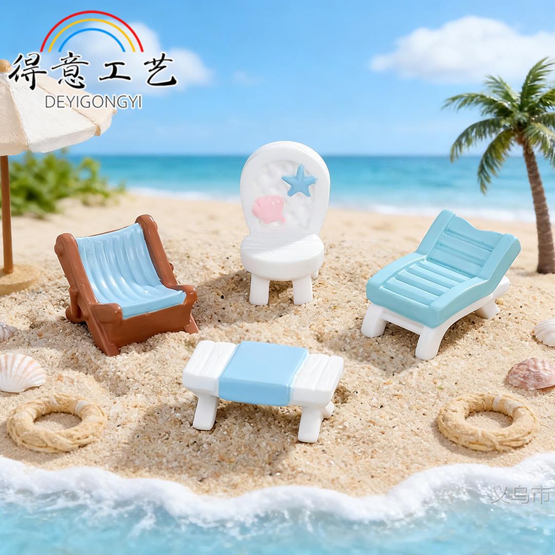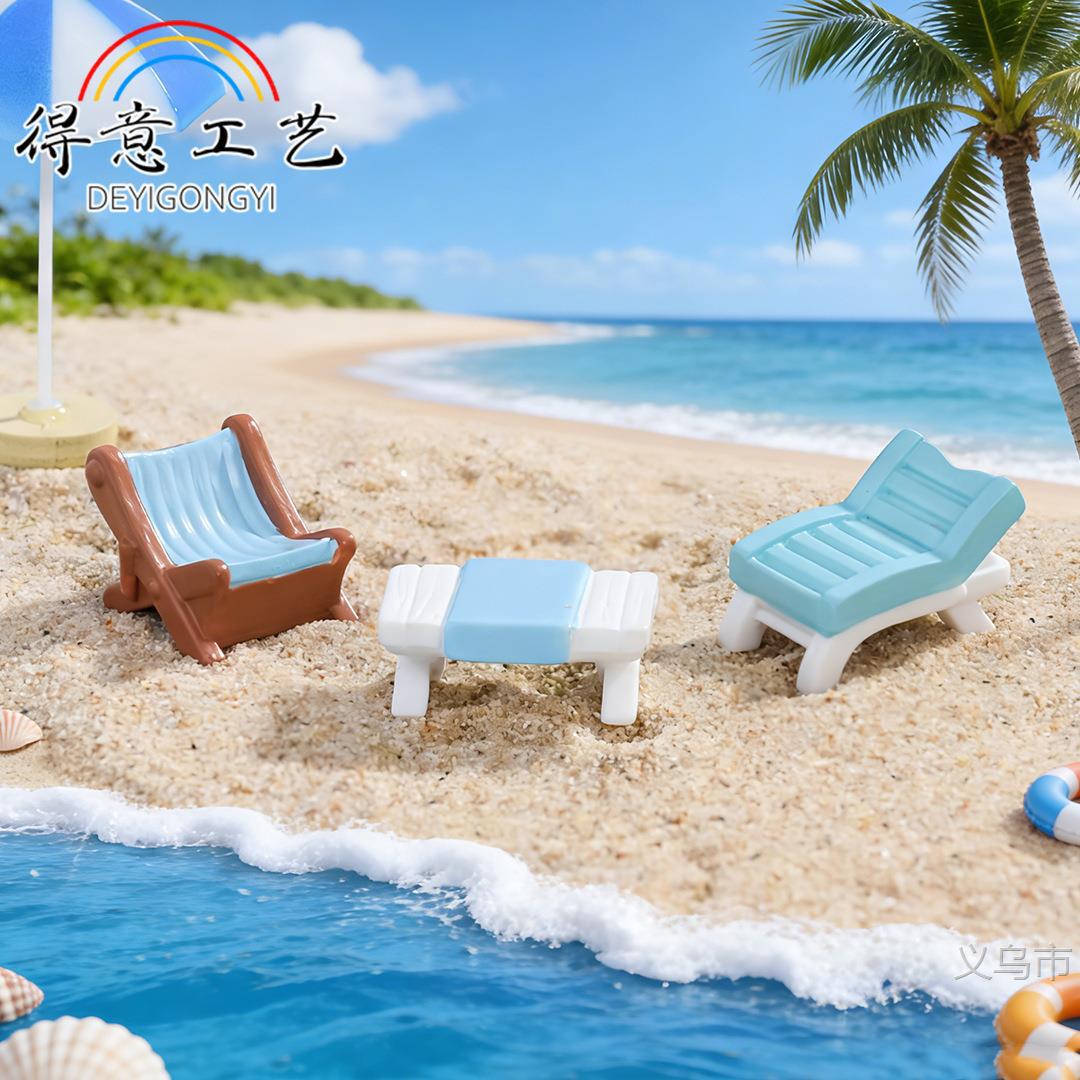 微景观夏日沙滩桌子躺椅树脂摆件迷你可爱海景装饰品配件桌面摆件
