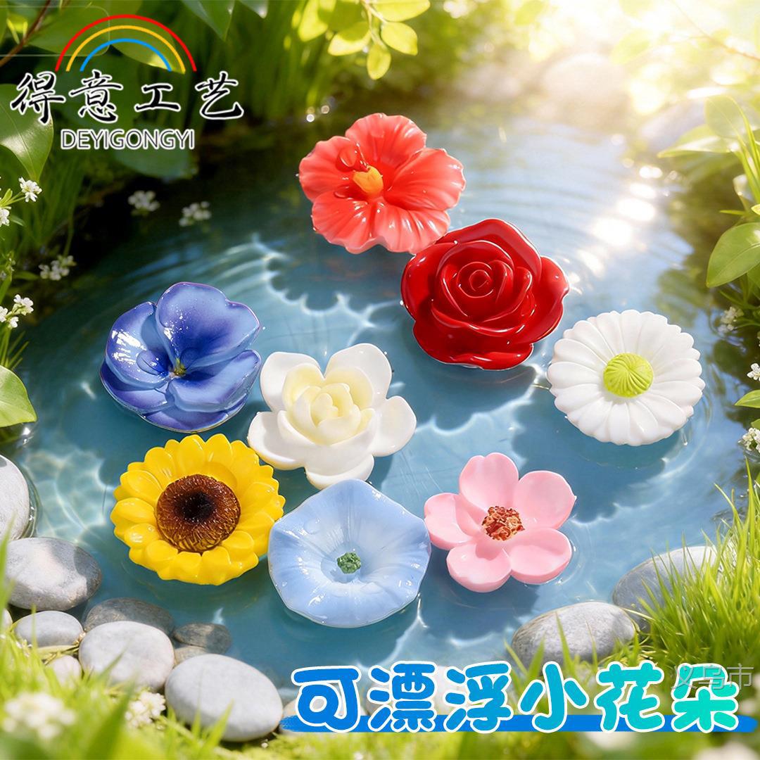 树脂浮水仿真花漂浮摆件微景观装饰品 多色花朵创意家居园艺配件