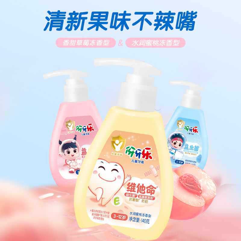 伢牙乐140g儿童3到12岁含氟防蛀按压式牙牙乐清洁儿童牙膏香甜草