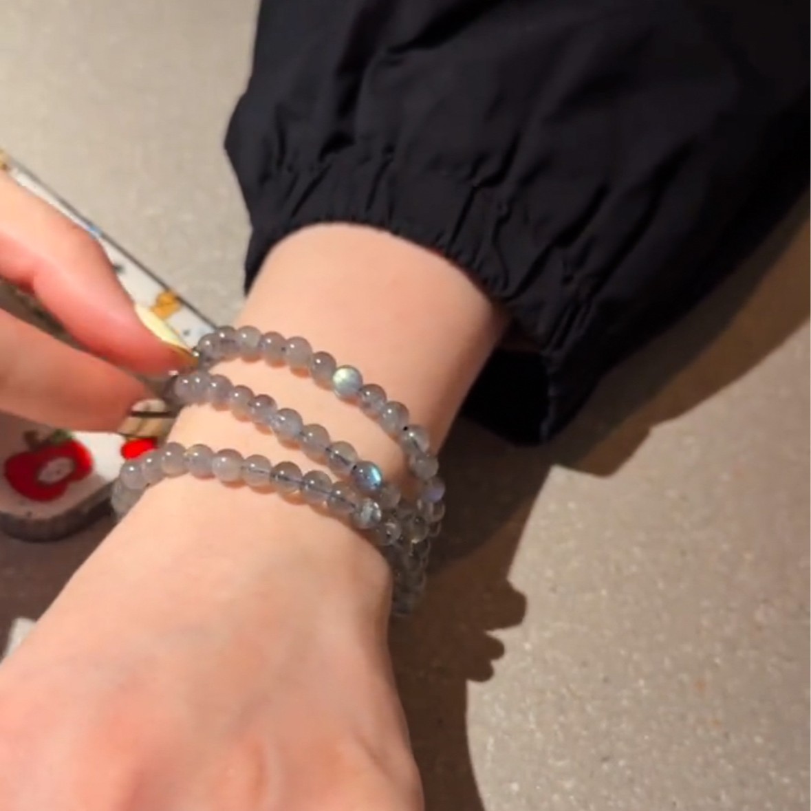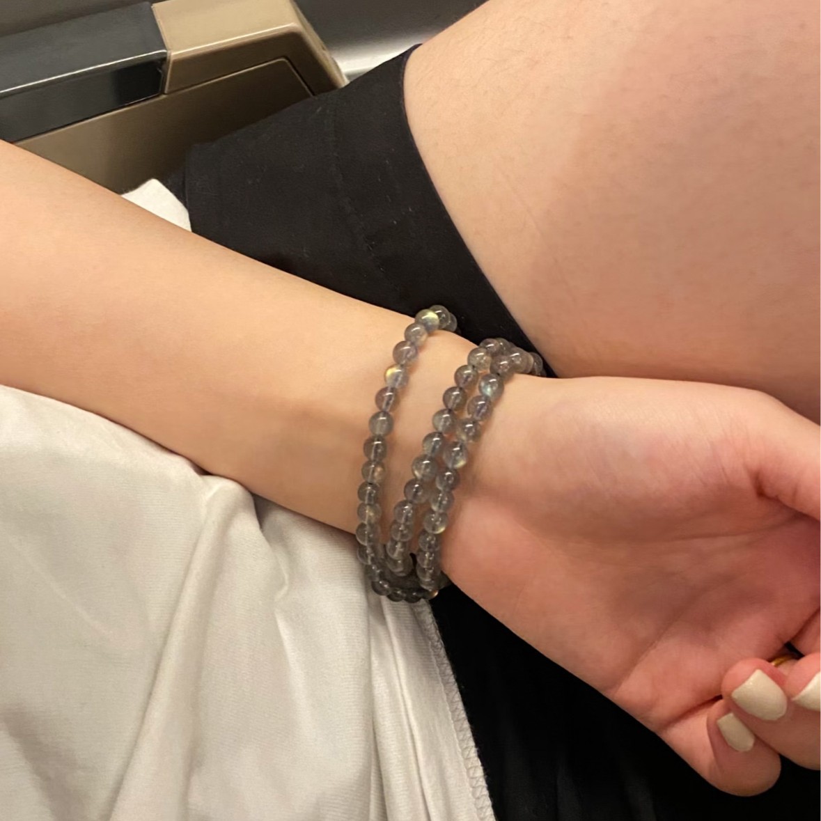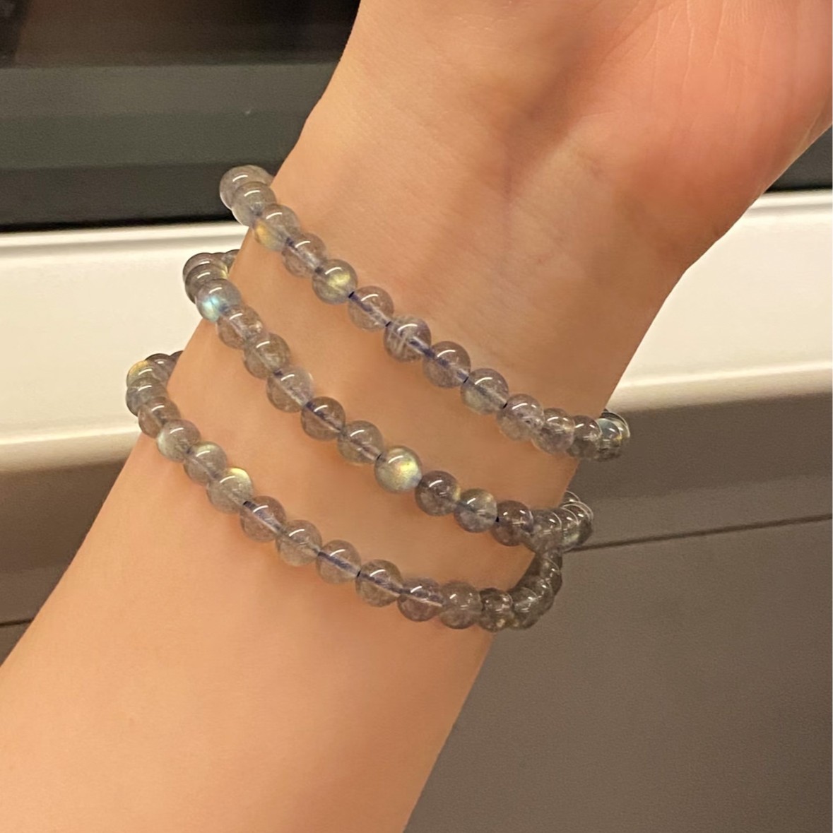 夏日简约极简风天然灰月光石手串轻奢小众三层多圈缠绕高级感手饰