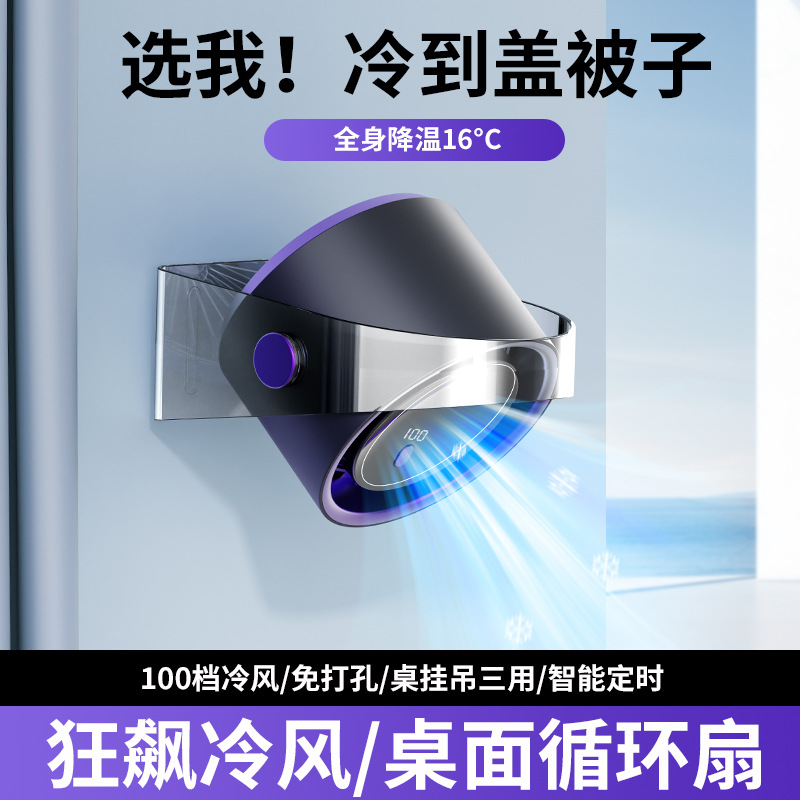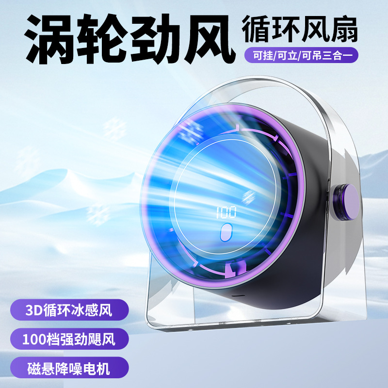 跨境热销桌面涡轮风扇便携式USB充电数显100档高速风扇循环扇批发