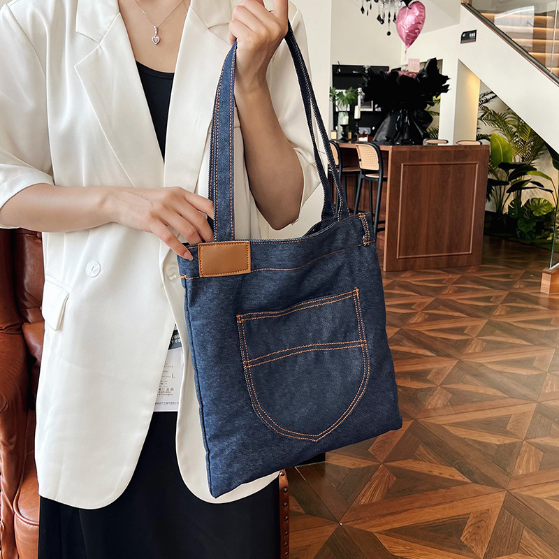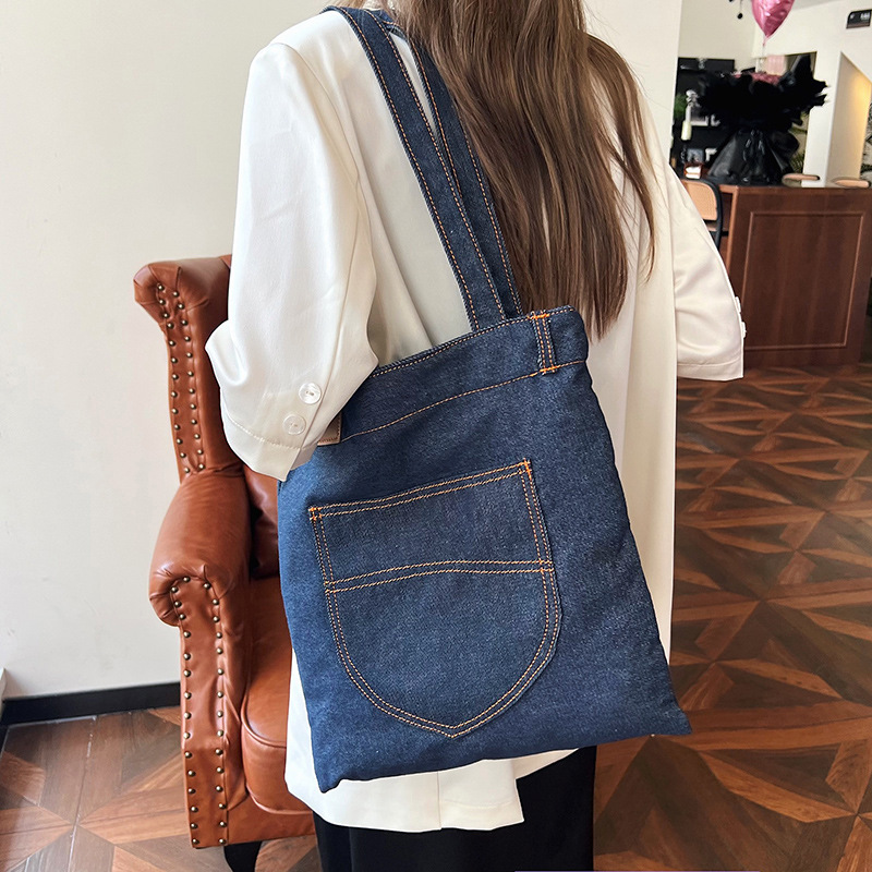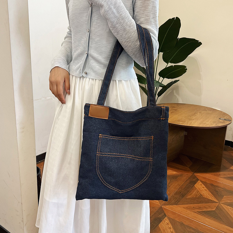 2026新款休闲帆布包包大容量女腋下包森萌牛仔布托特包学生上课包
