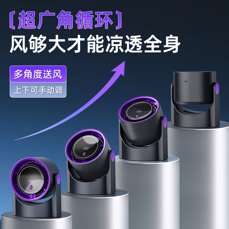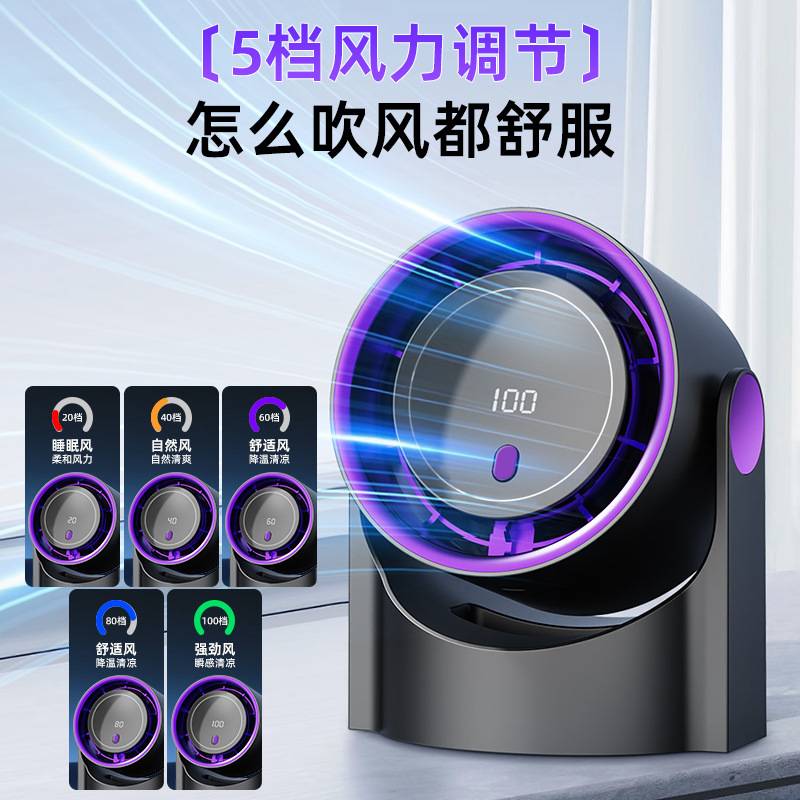 爆款热销桌面风扇 家用usb充电空气循环扇大风力数显户外露营风扇