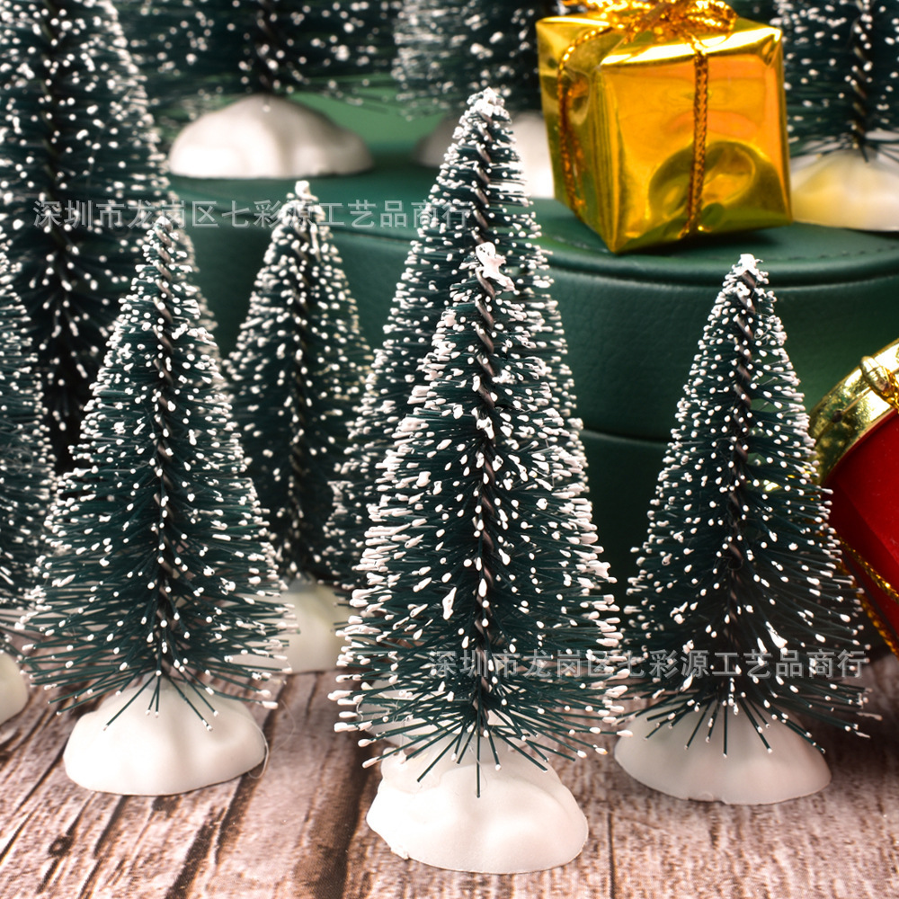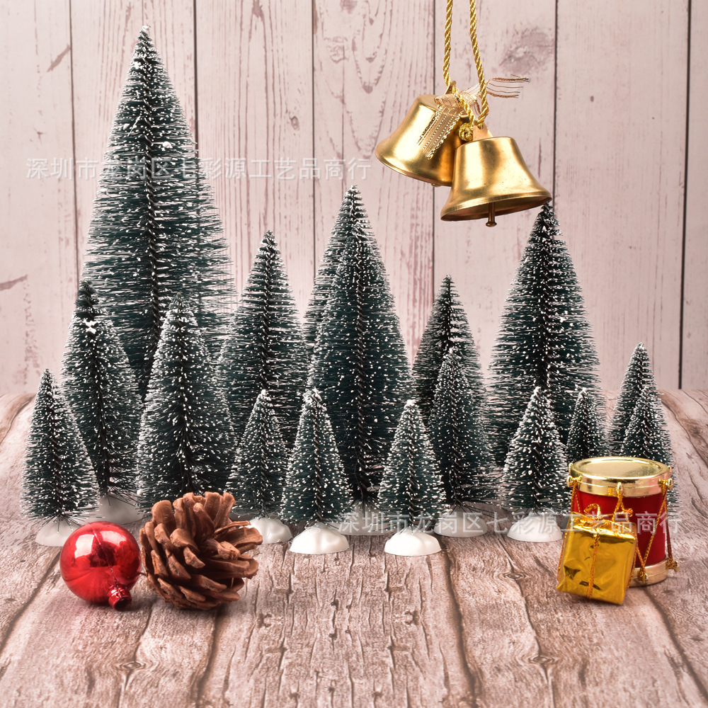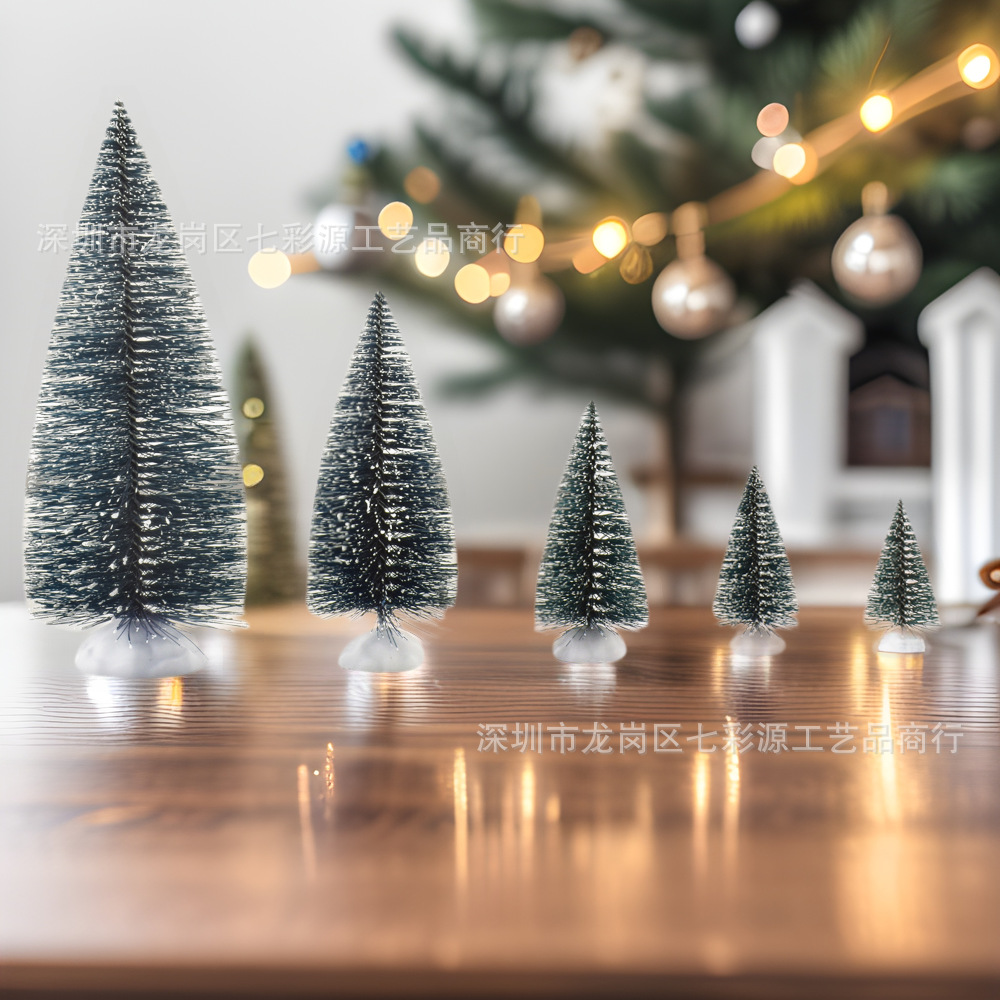 迷你圣诞树胶丝松针上雪塔松5-20cm绿色圣诞桌面摆件diy小圣诞树