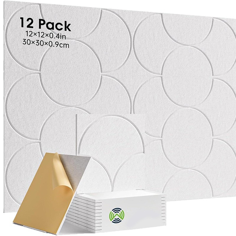 跨境自粘聚酯纤维吸音板墙贴12片装毛毡隔音板家庭办公室降噪吸音