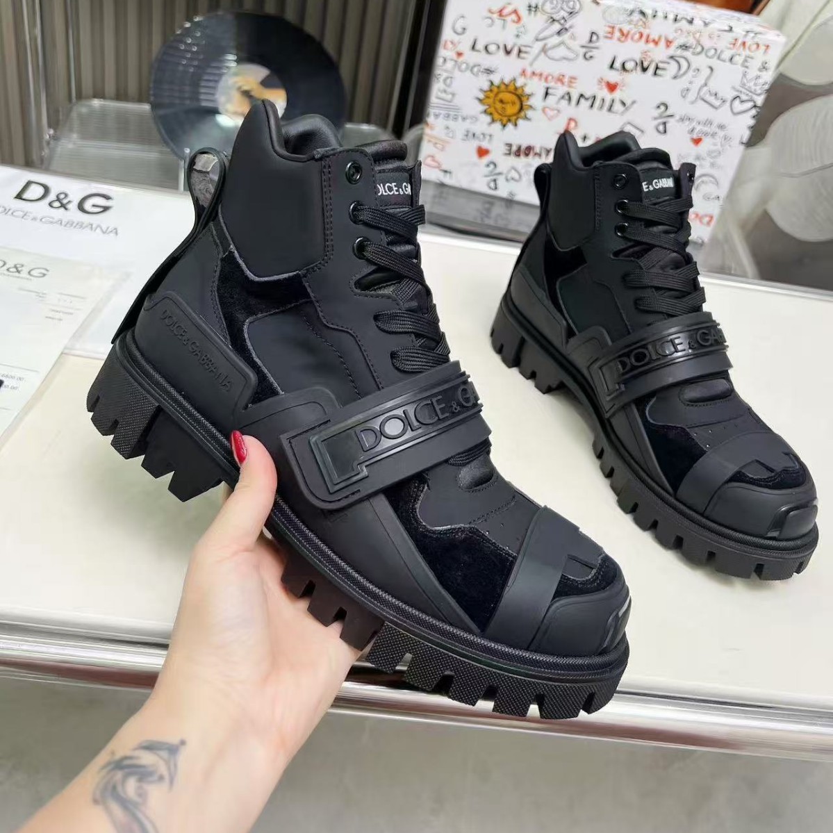 广州发货高品质一比一真皮外贸男式时尚马丁靴潮牌字母印花工装靴