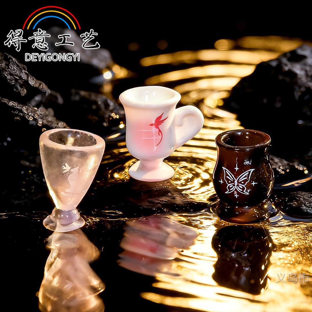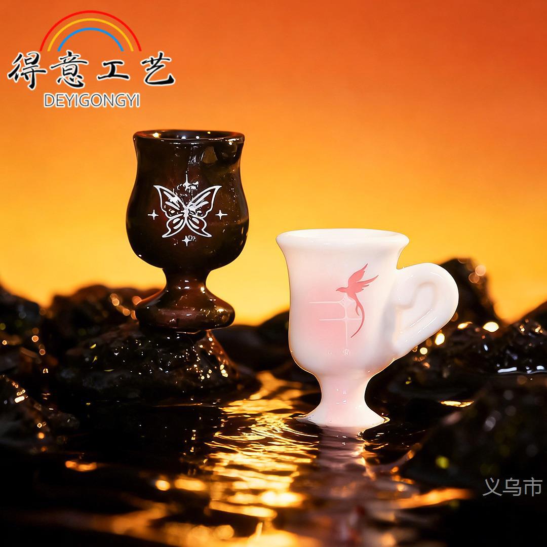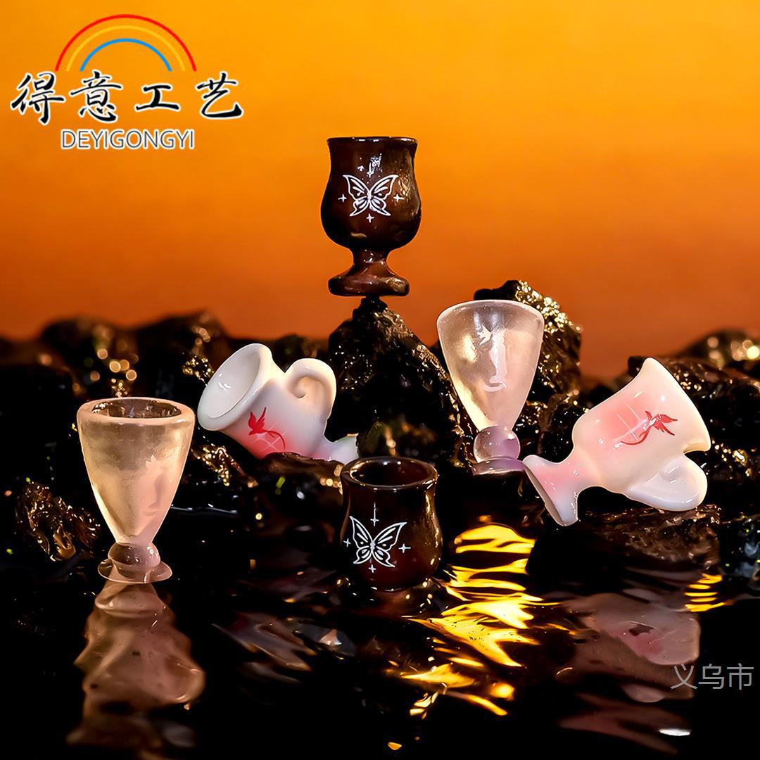 创意魔法暗黑酒杯微景观装饰品卡通蝴蝶飞鸟高脚杯树脂摆件装饰品
