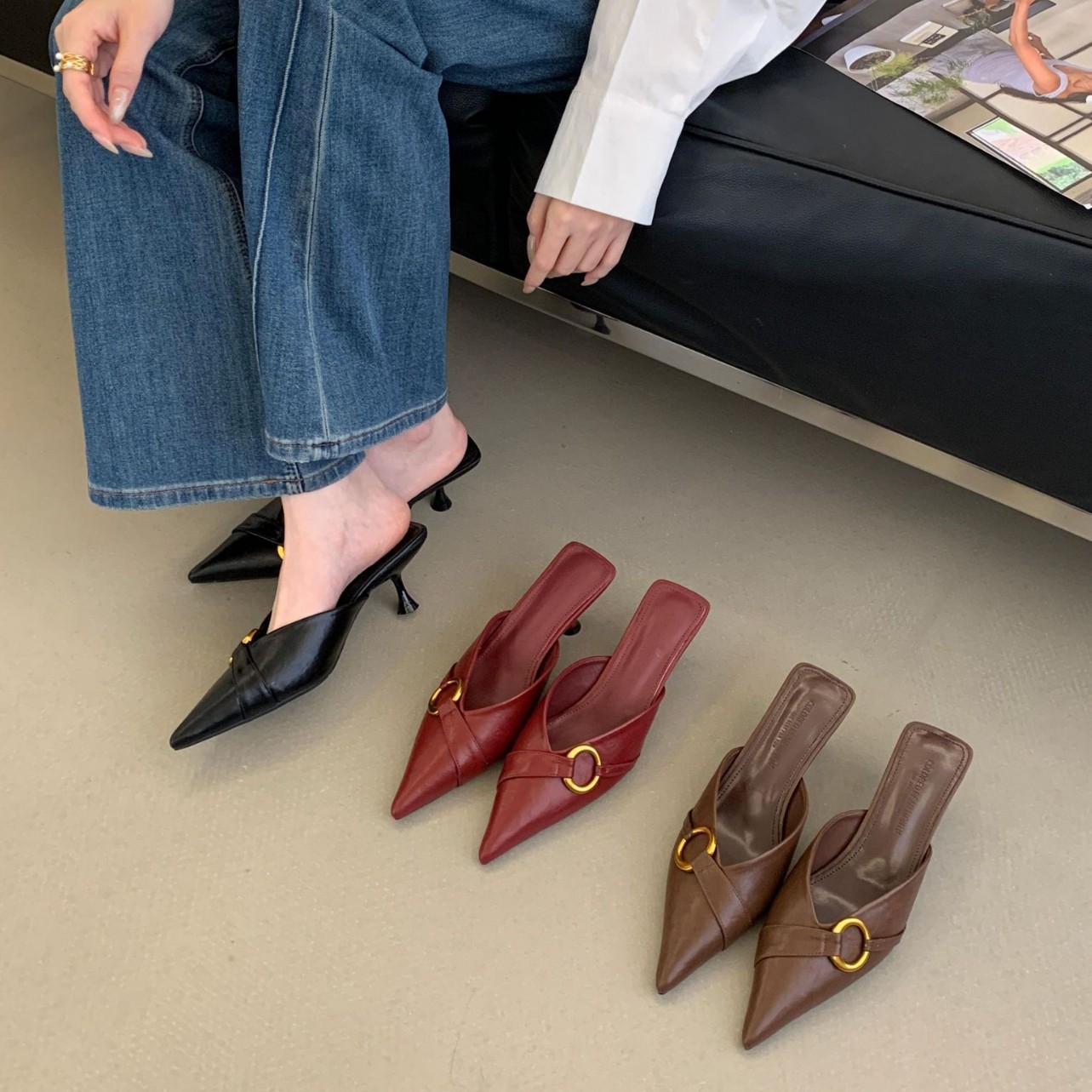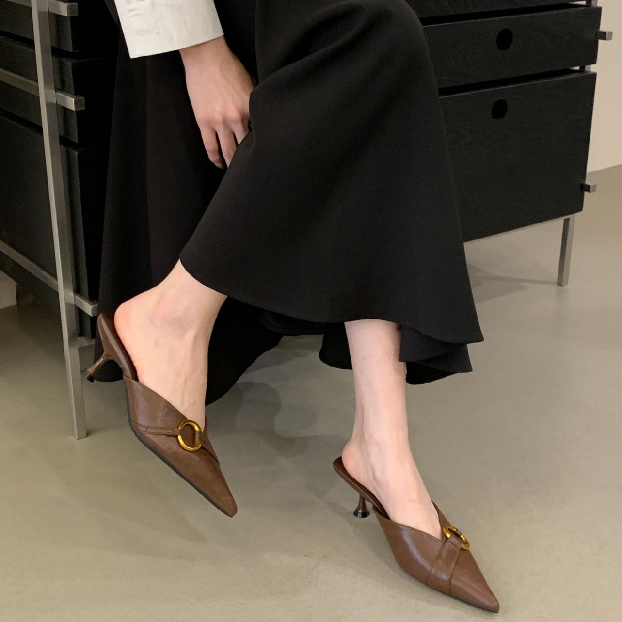 纯色金属扣半托2026春季新款尖头细跟高跟舒适穿着潮流时尚女单鞋