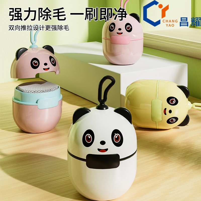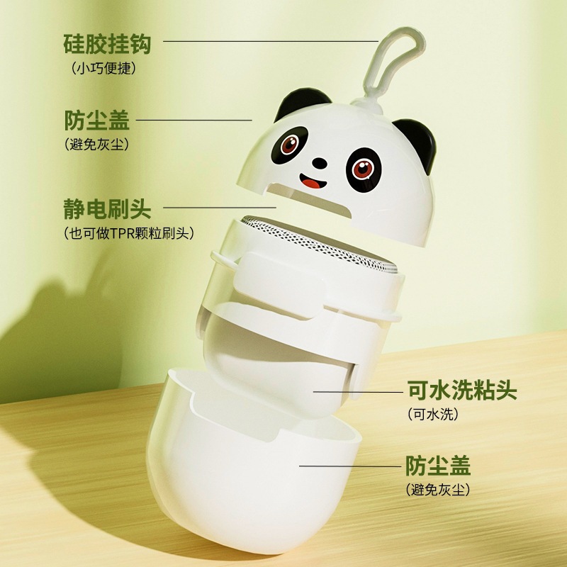 粘毛滚筒熊猫粘毛器家用除毛神器水洗式随身刷静电卡通刷衣物粉色