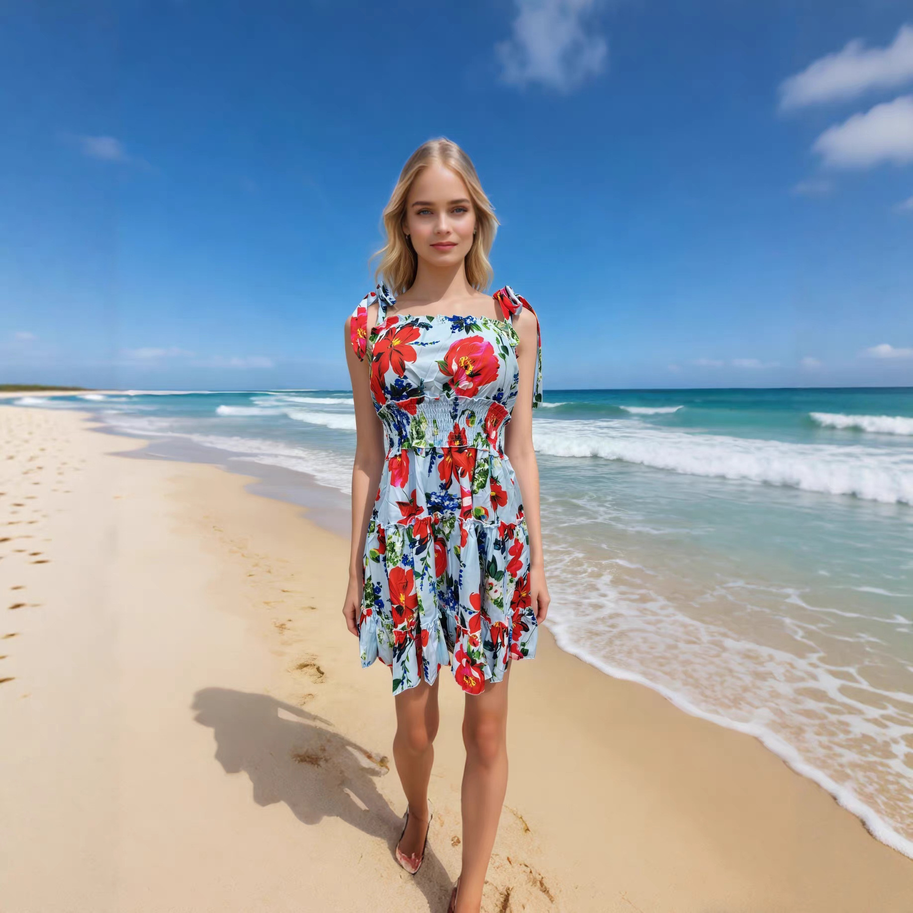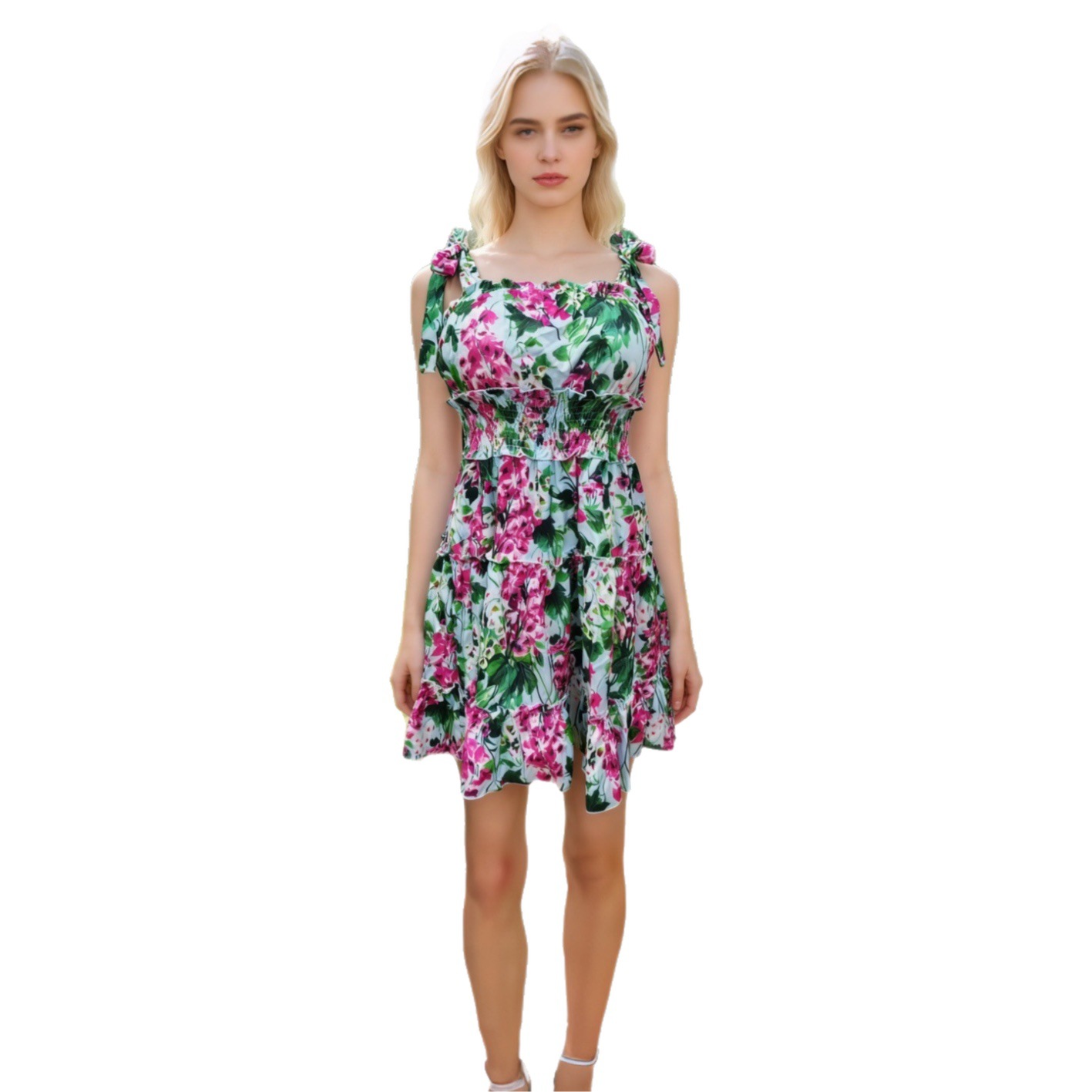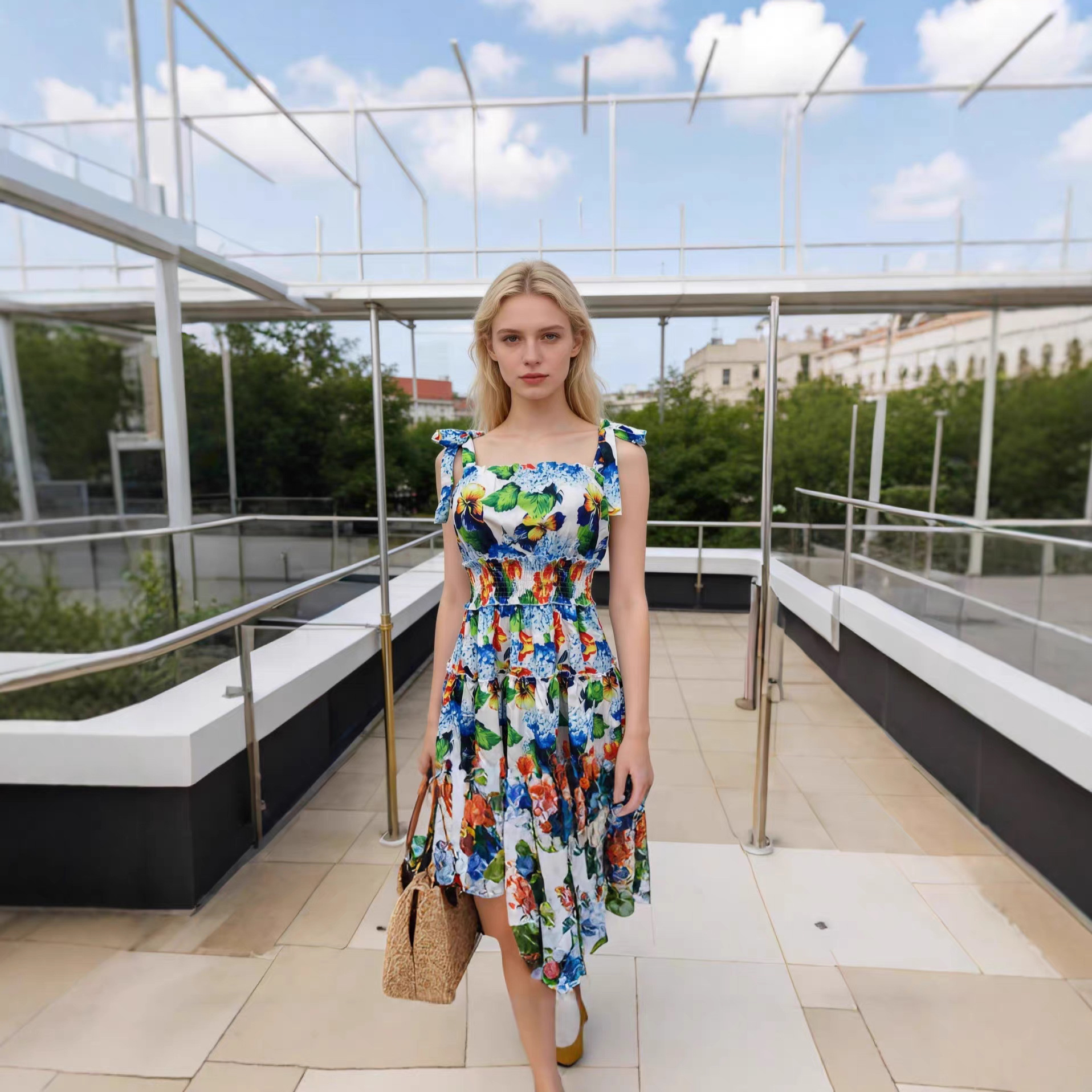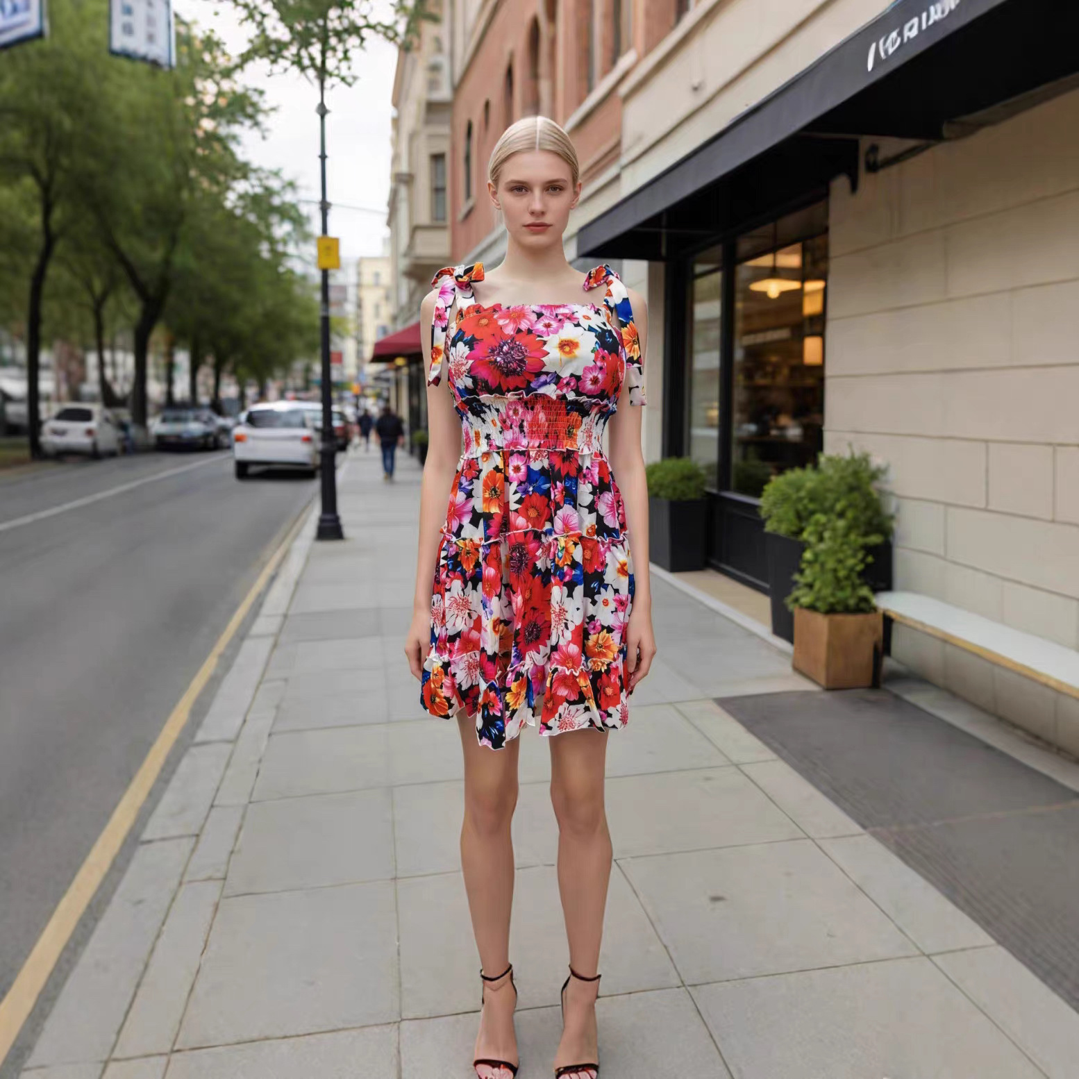 跨境女装法式复古碎花连衣裙2025夏季新款修身显瘦方领吊带A字裙