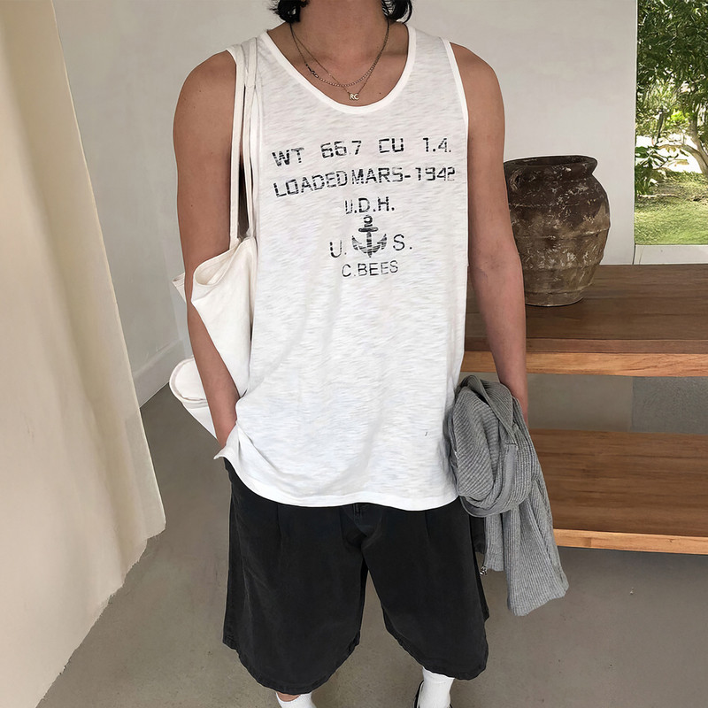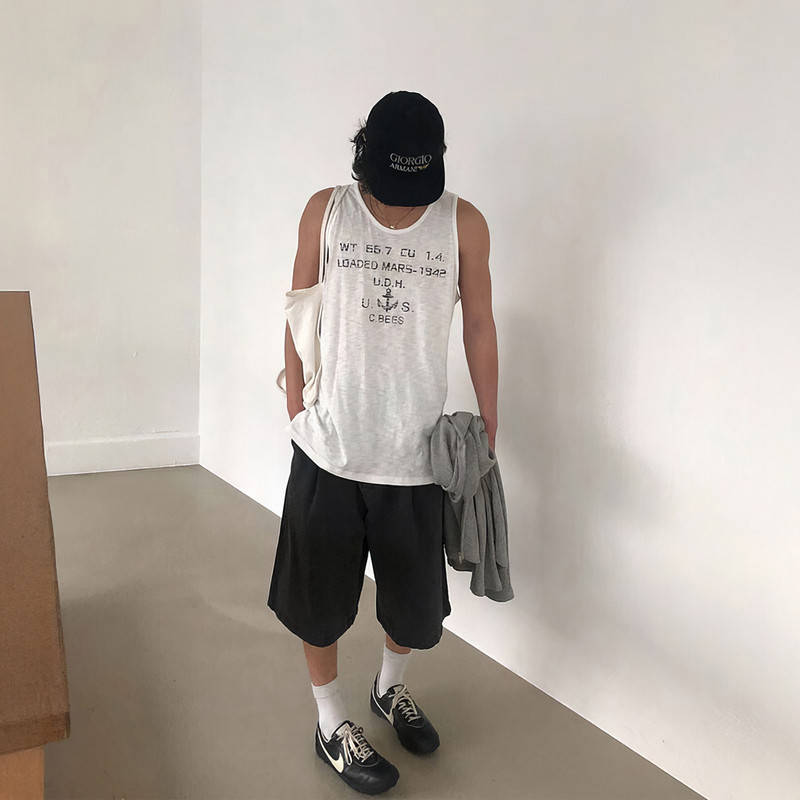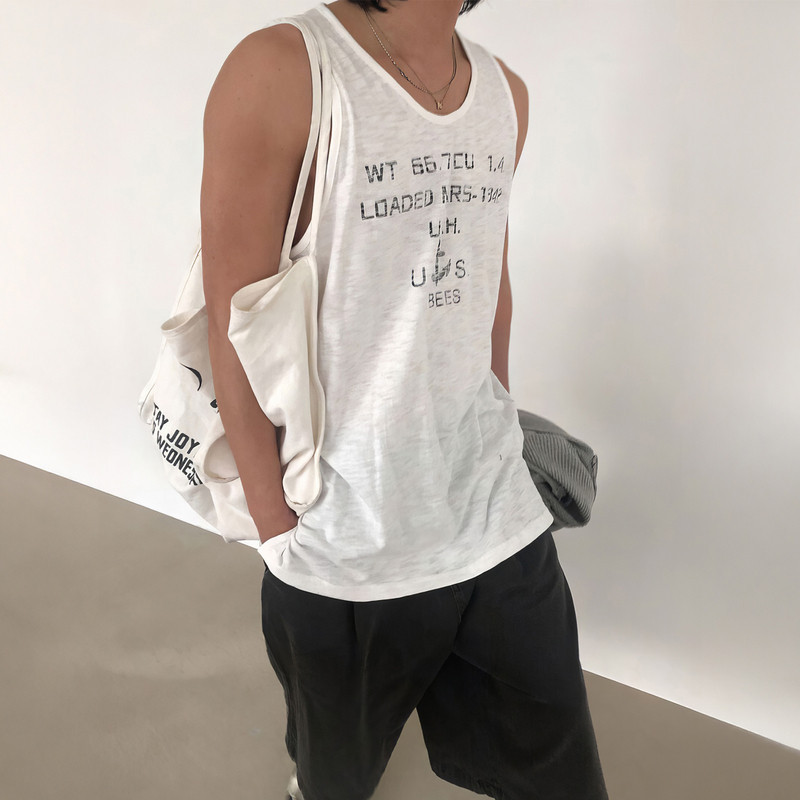 美式覆古字母印花背心男士夏季潮牌宽松坎肩上衣休闲风百搭无袖T