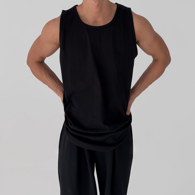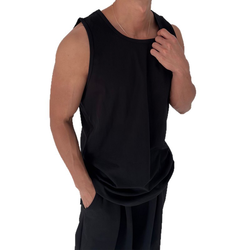 重磅圆领背心男款夏季美式宽松运动健身无袖体恤透气弹力打底汗衫