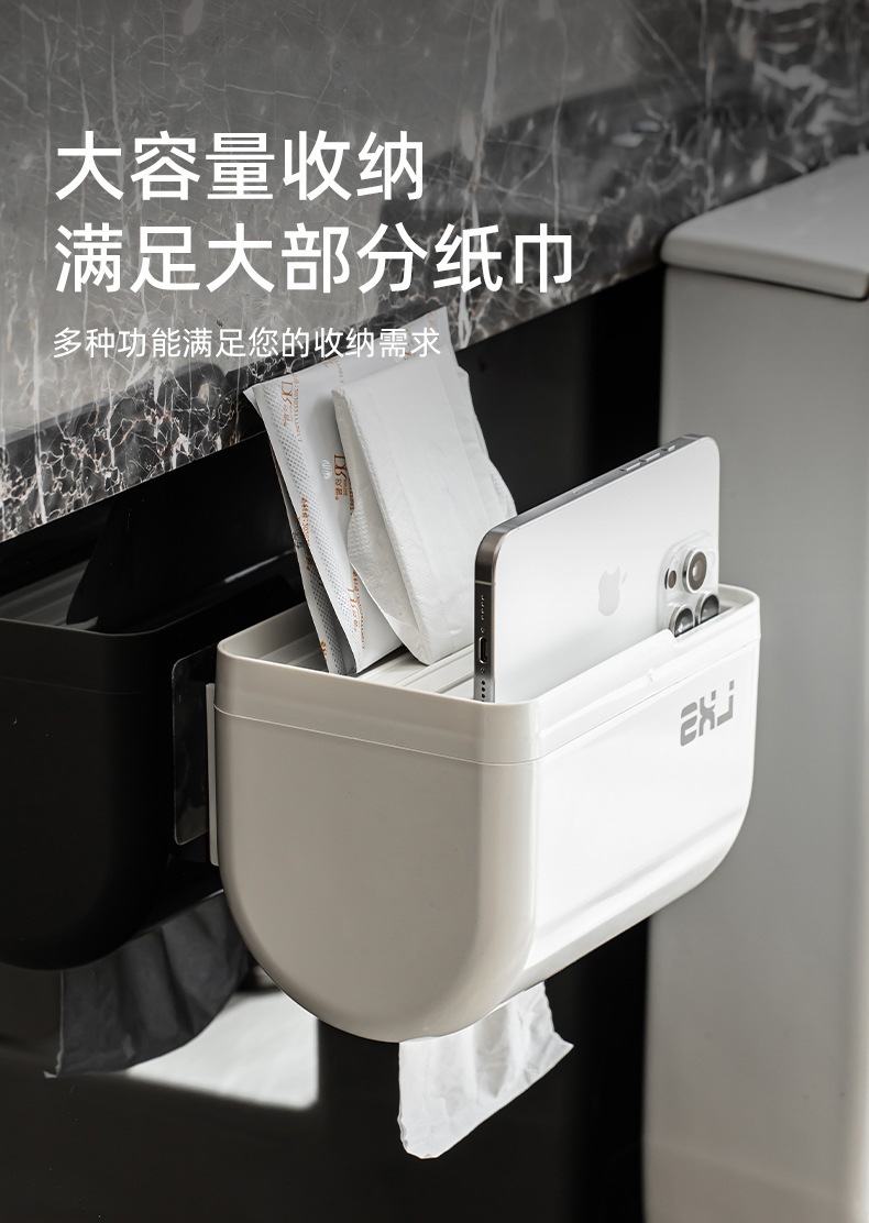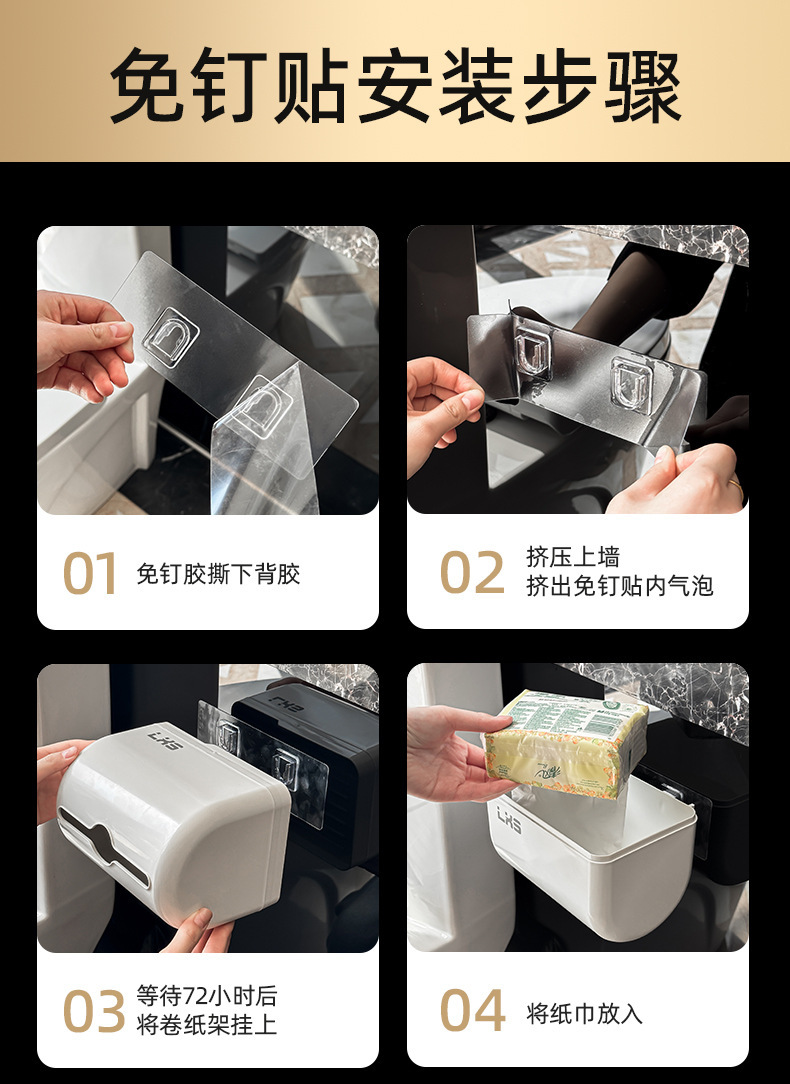 免打孔壁挂纸巾盒 厕所厕纸架家用卷纸收纳盒置物架新款代发