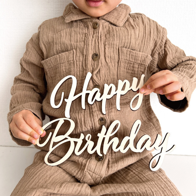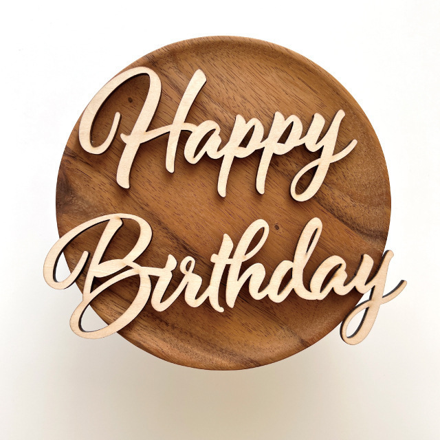 跨境斜体字体happybirthday原木片装饰木制英文生日快乐派对布置