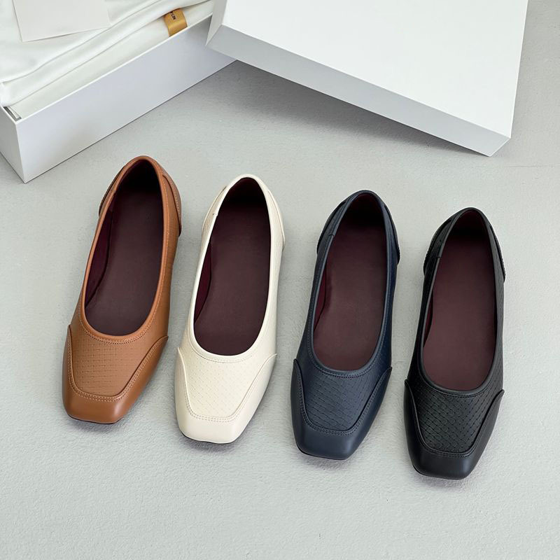 法式优雅气质!莞产真皮方头平底单鞋 新款舒适通勤浅口玛丽珍鞋