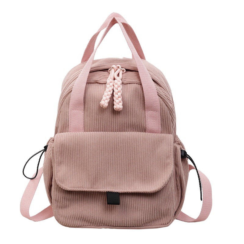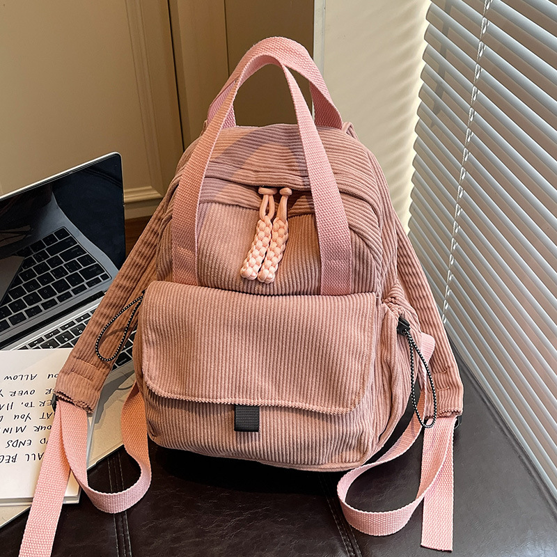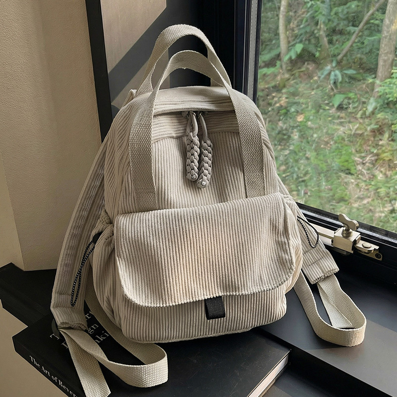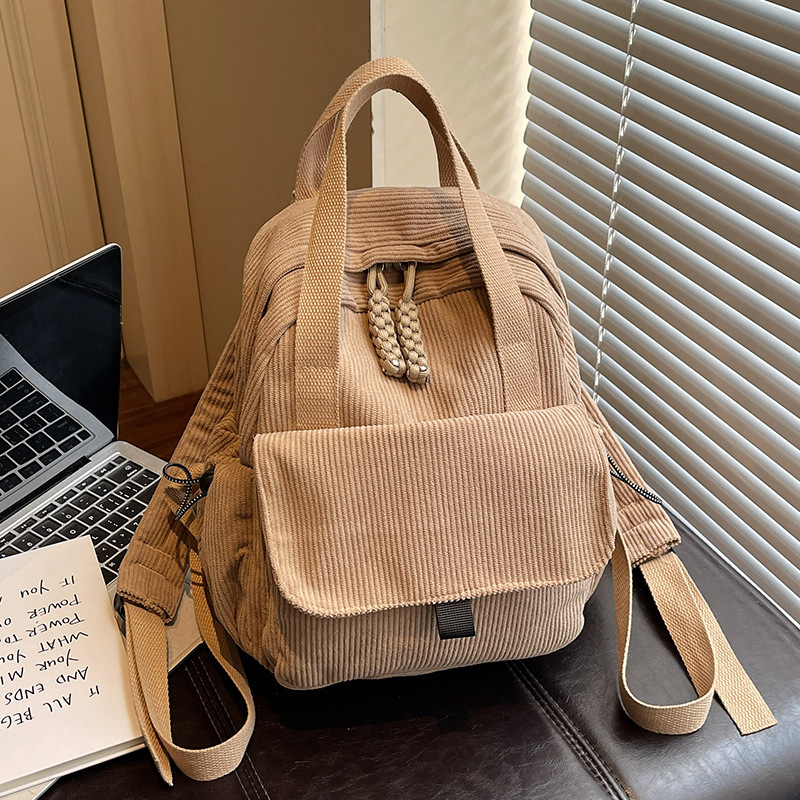 2026新款灯芯绒双肩包女学院风初中大学生书包通勤多功能旅行背包