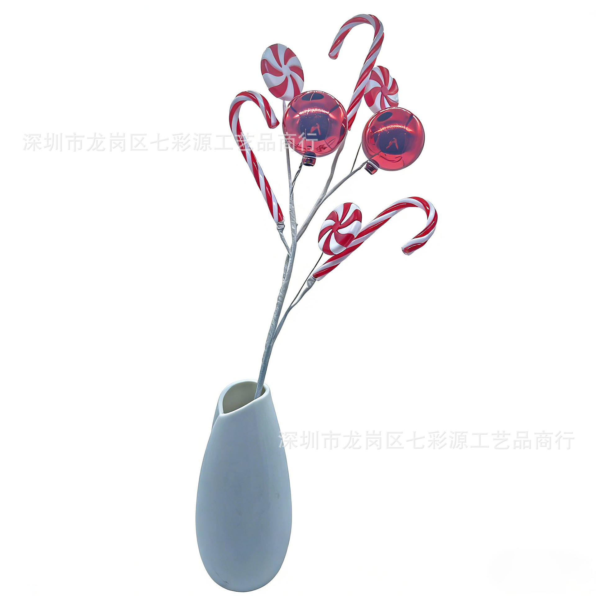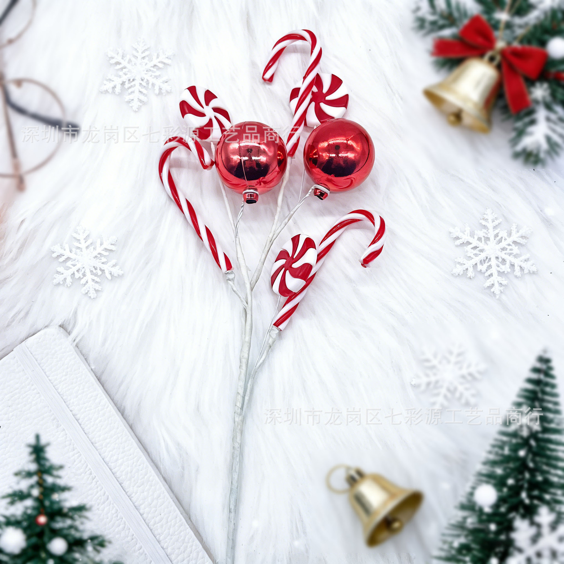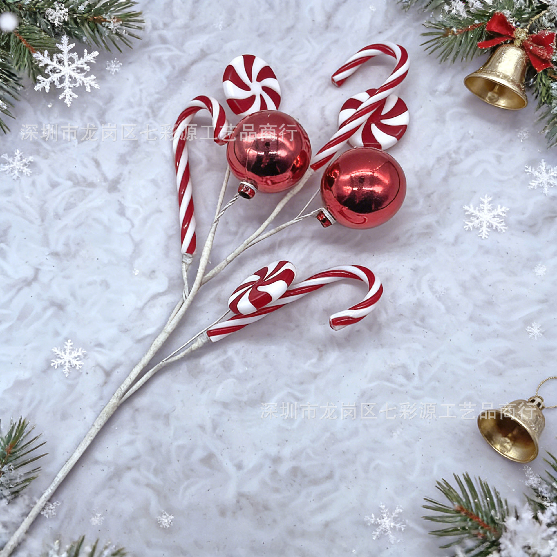 厂家供应圣诞拐杖糖果插枝 红白拐杖糖果电镀彩球装饰 圣诞树插枝