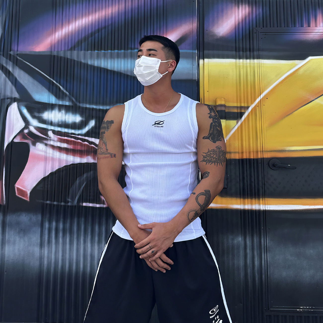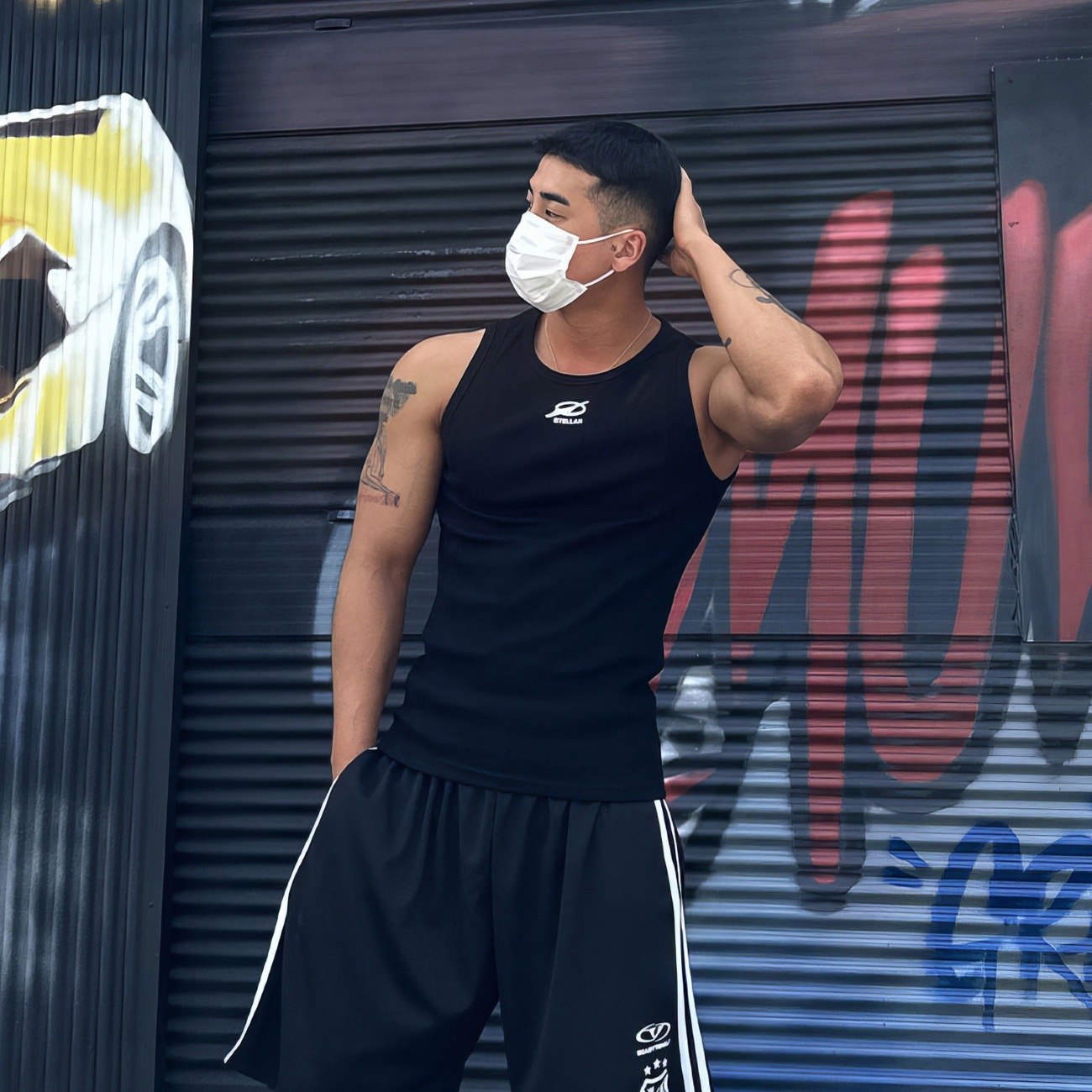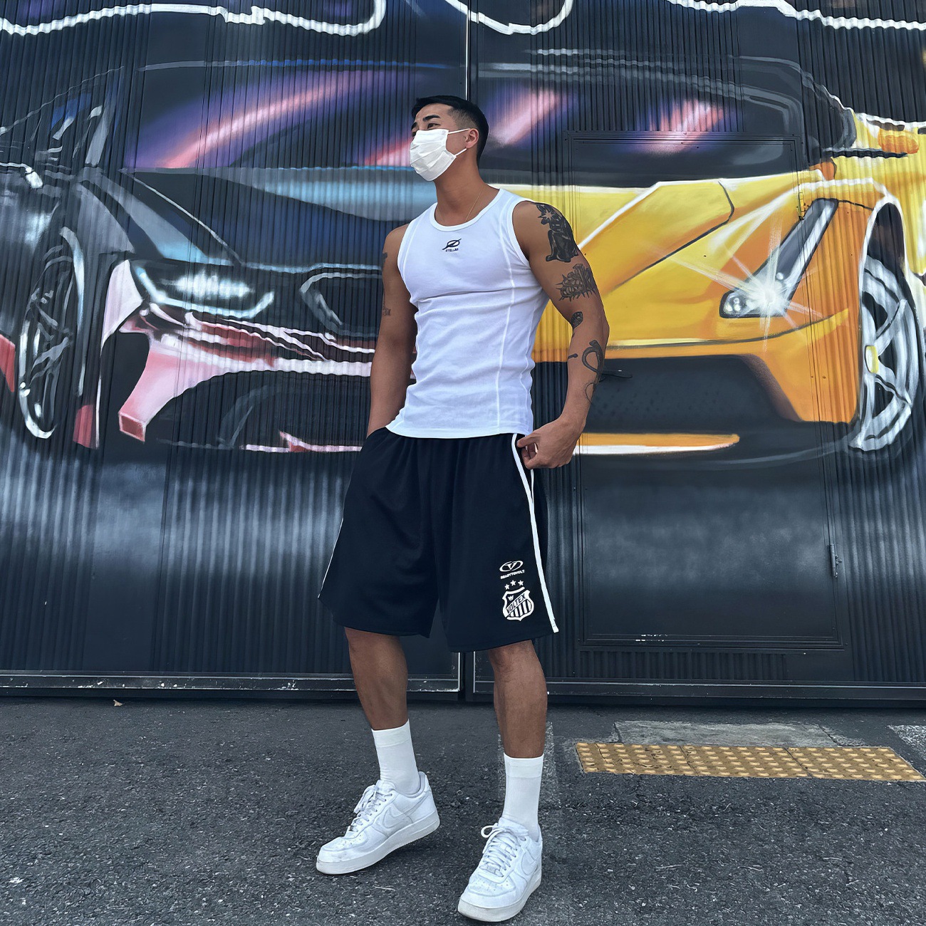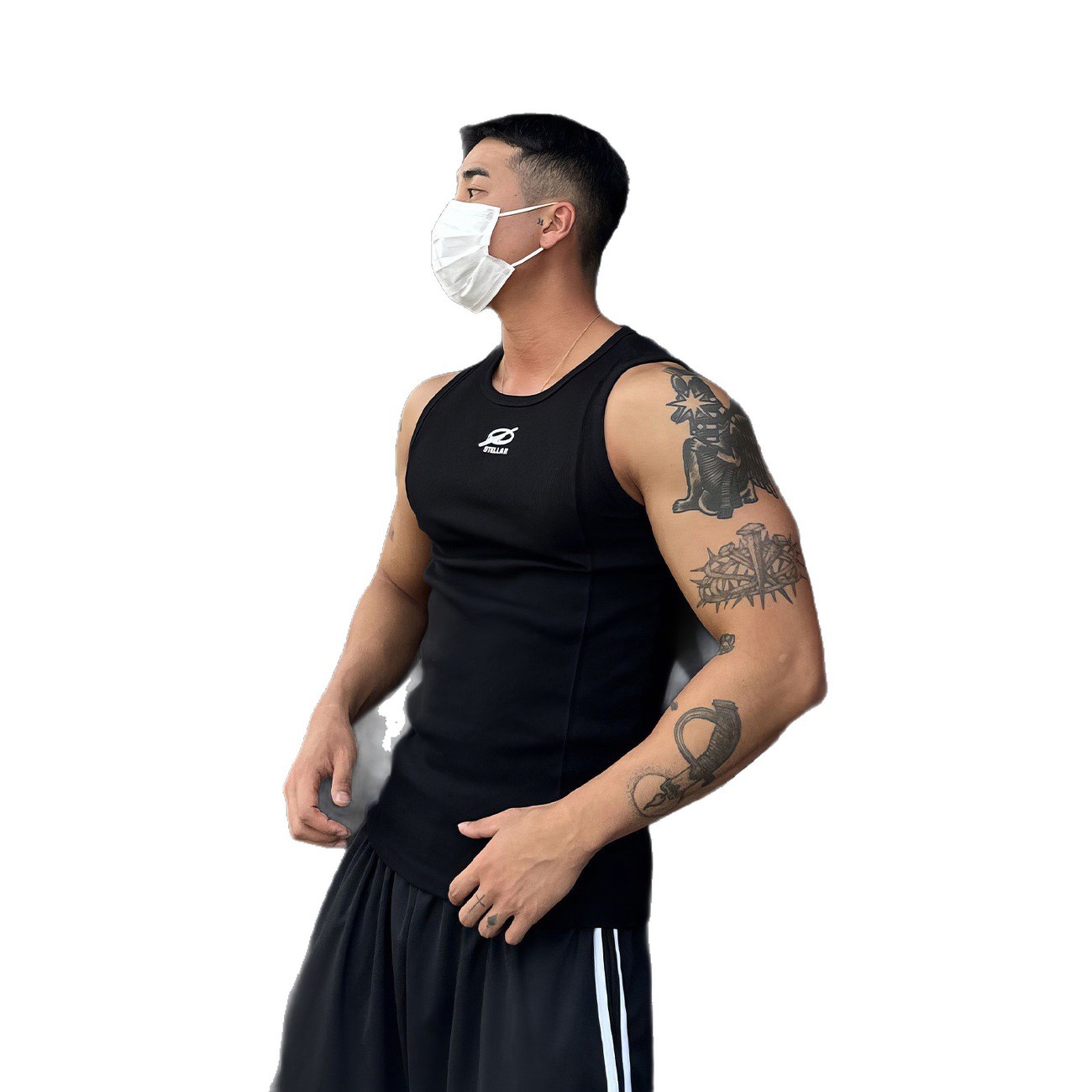 白色运动印花背心男夏季弹力修身打底衫薄款无袖t恤健身休闲上衣