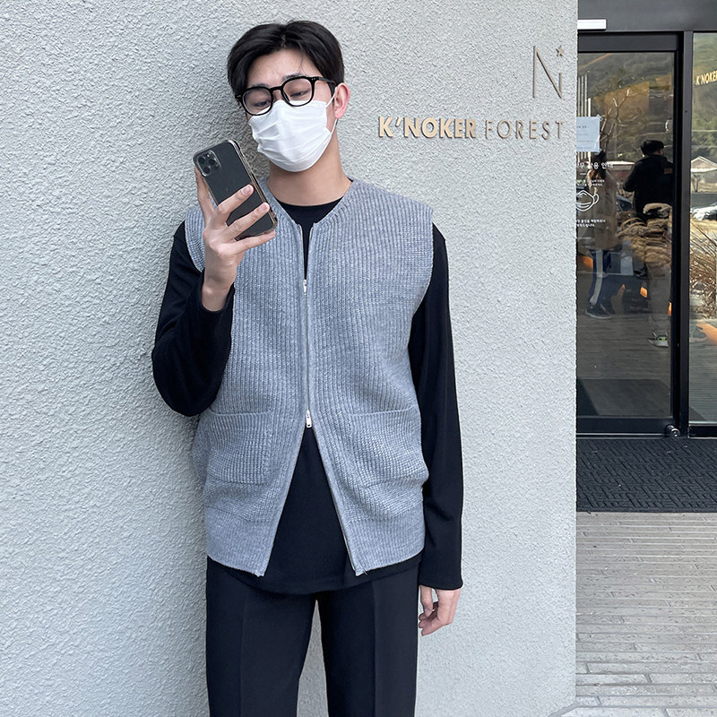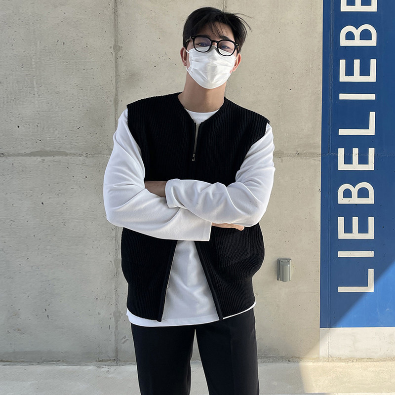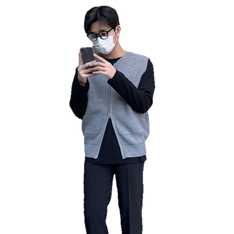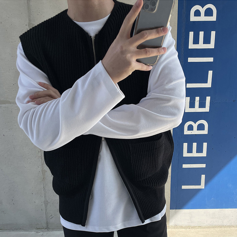 春秋无袖背心毛衣男韩版潮流坎肩马甲宽松纯色V领针织衫开衫外套