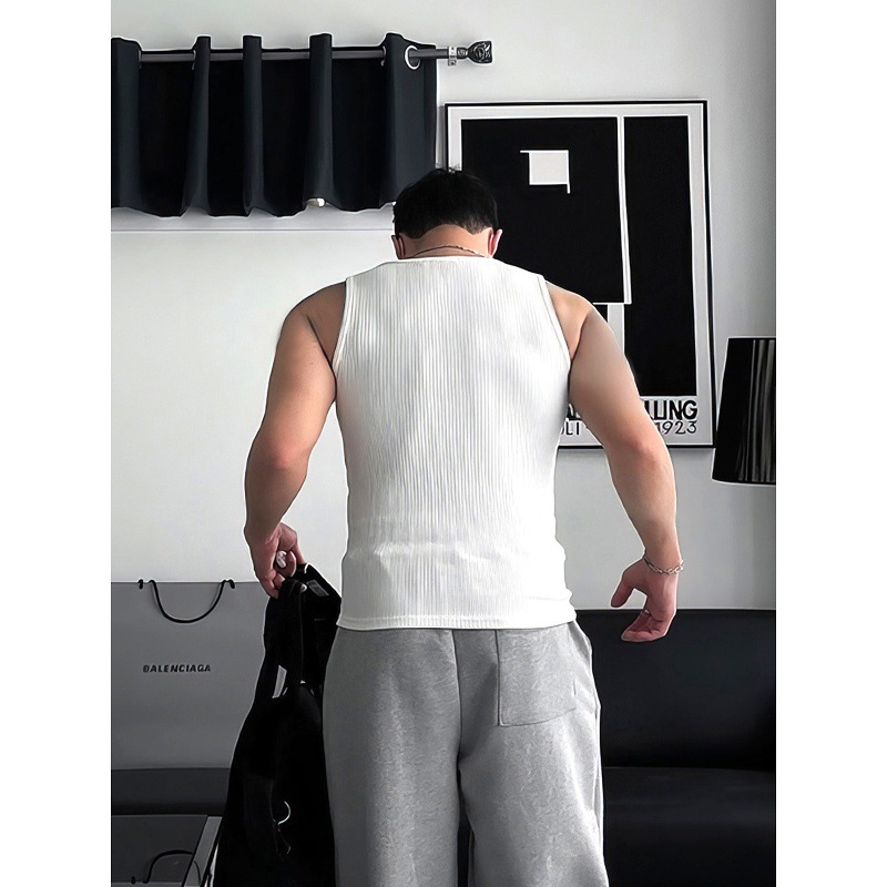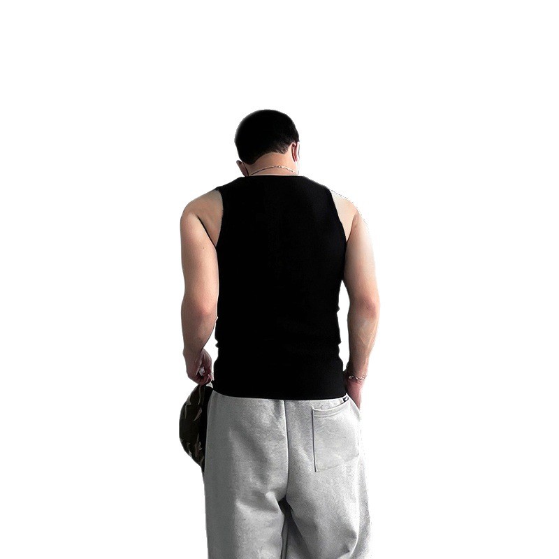 竖条螺纹修身针织背心男夏天美式硬汉健身运动休闲弹力无袖t恤衫
