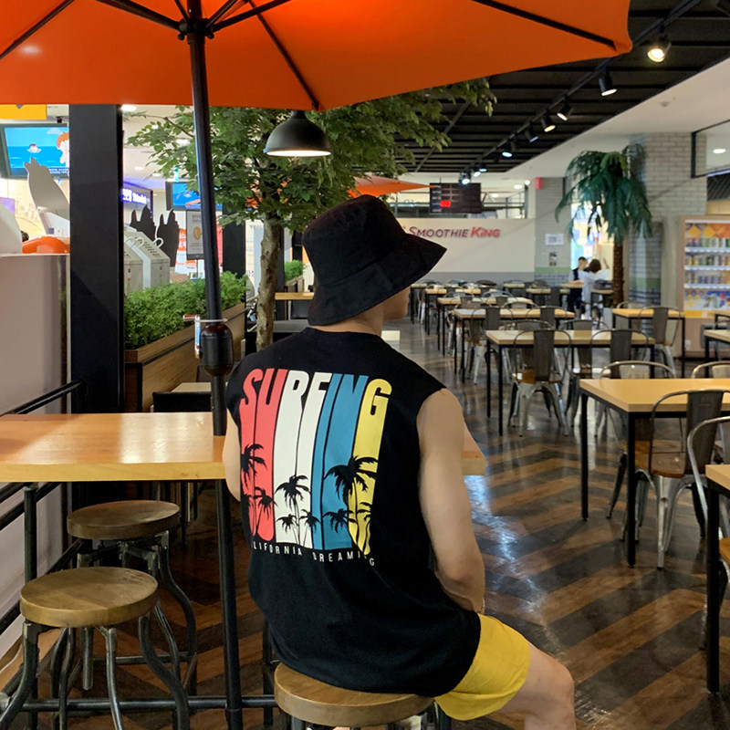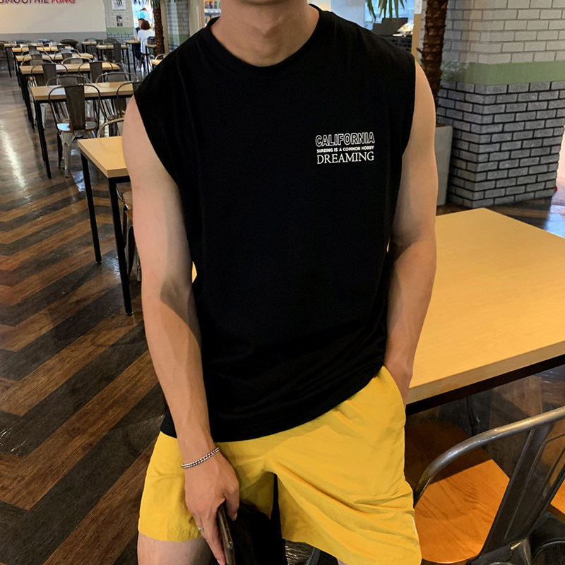 运动外穿无袖背心t恤男圆领坎肩韩版ins潮牌个性潮流宽松百搭薄款