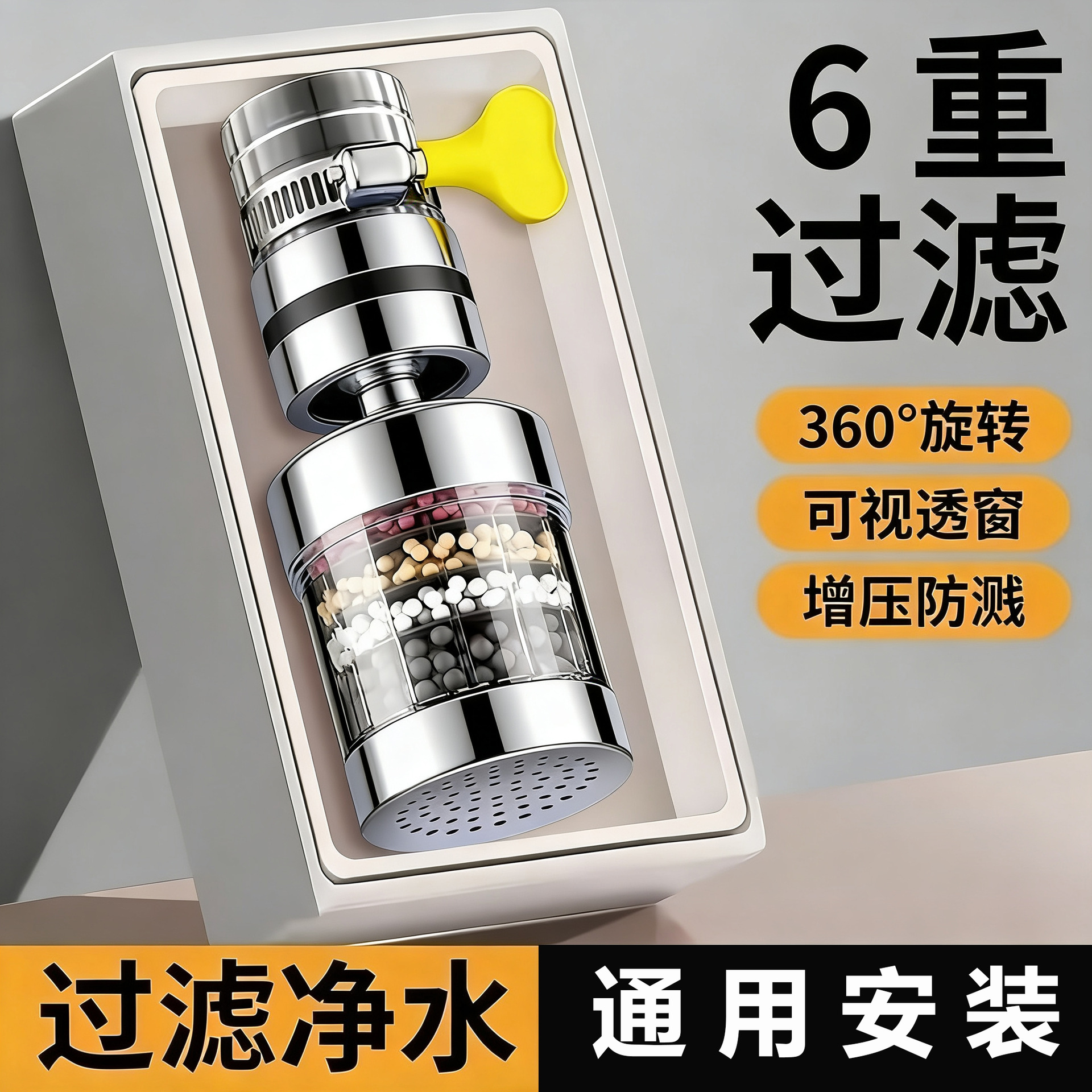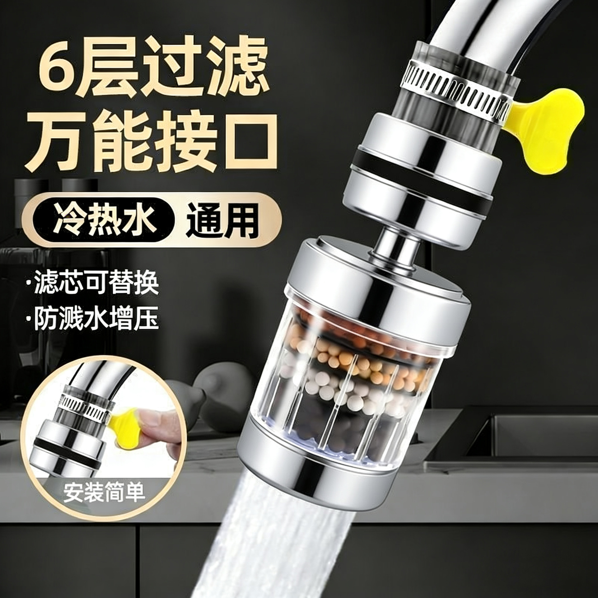 共润厨房水龙头 电商新款钛过滤器360度旋转6层过滤防溅厂家直销