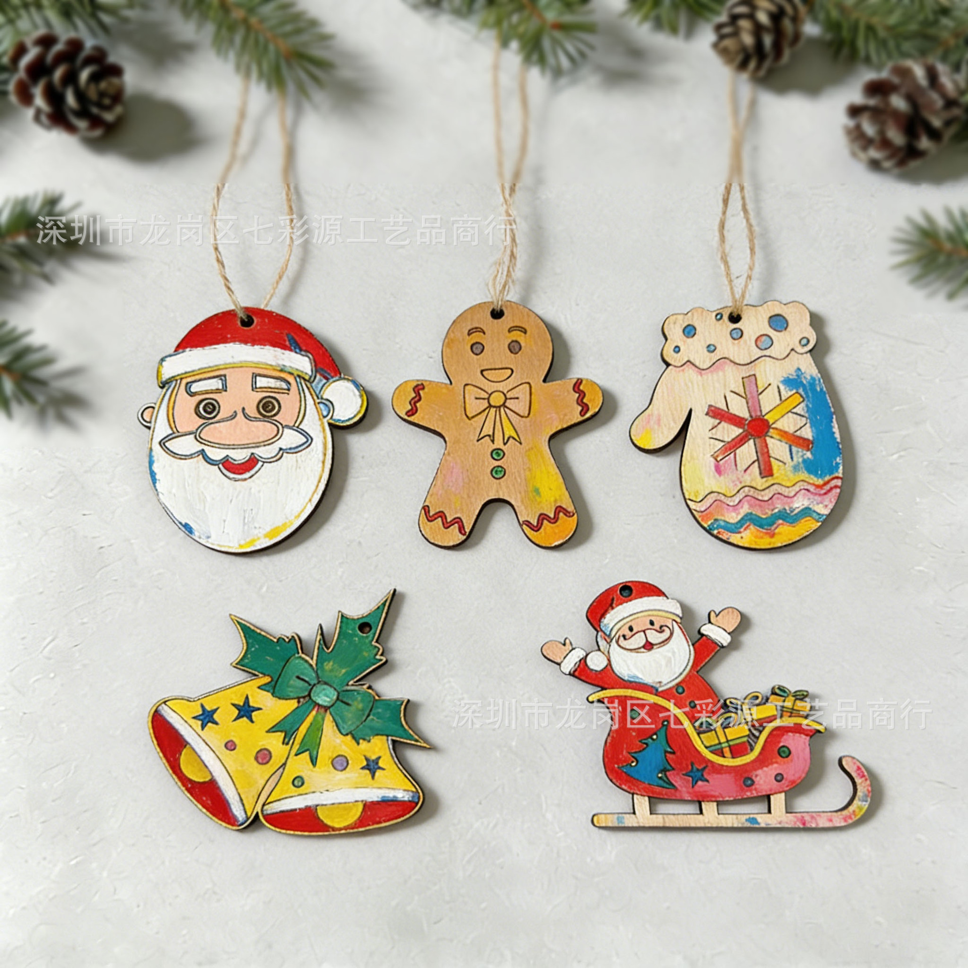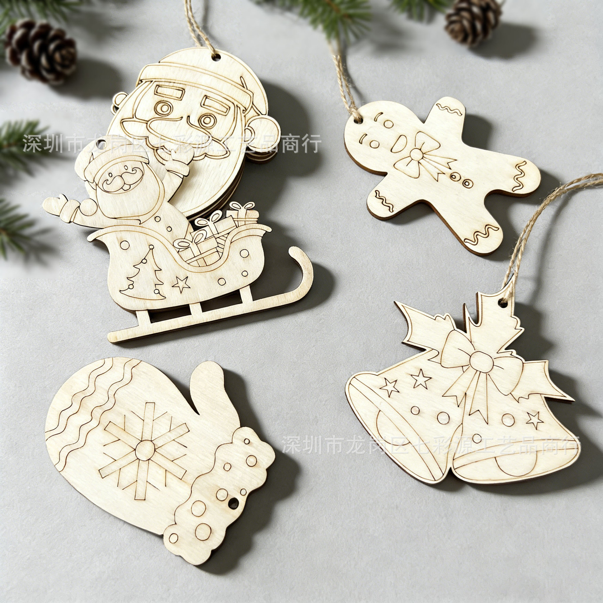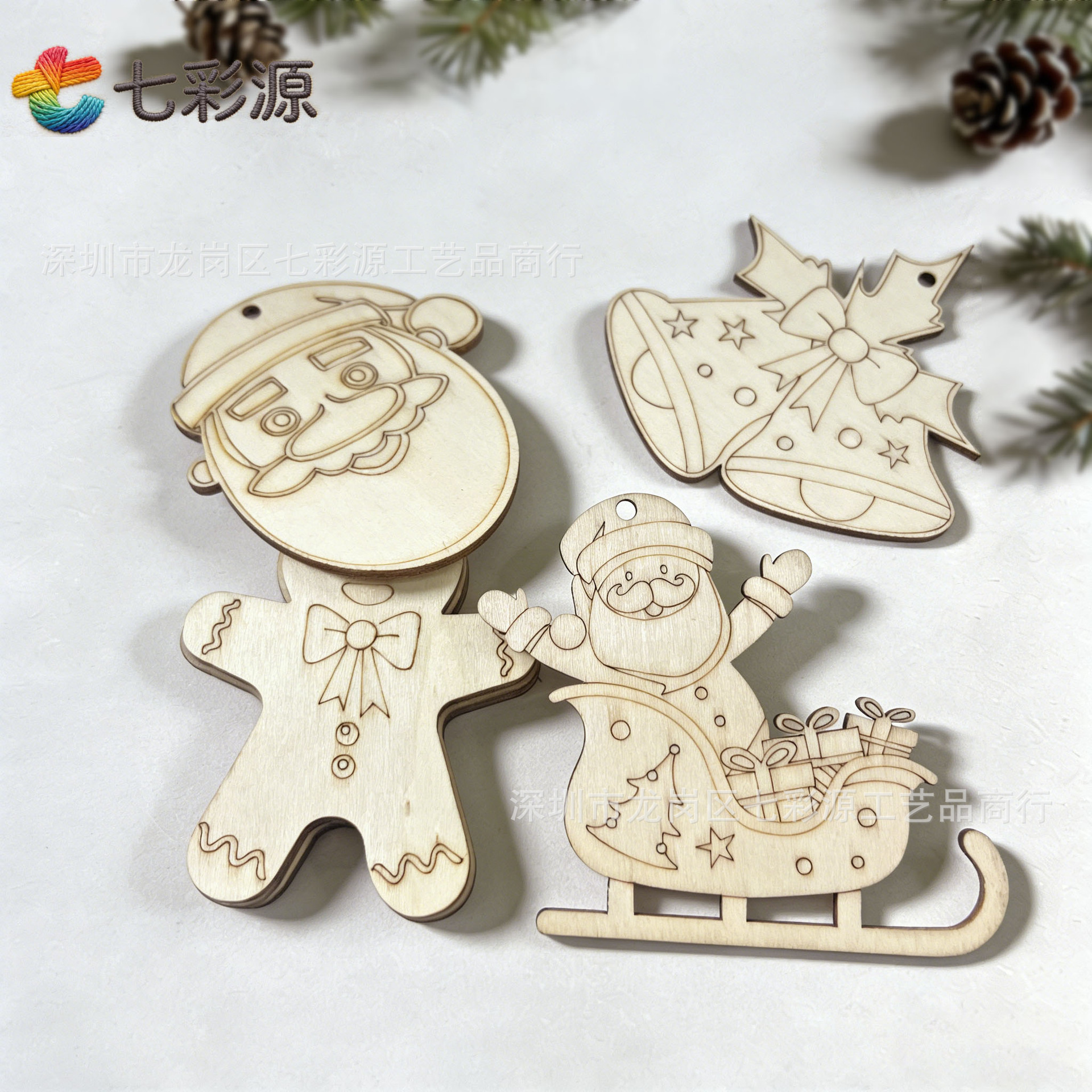 圣诞木质 DIY 挂件原木白胚 圣诞树装饰儿童手绘涂鸦木制批发手工